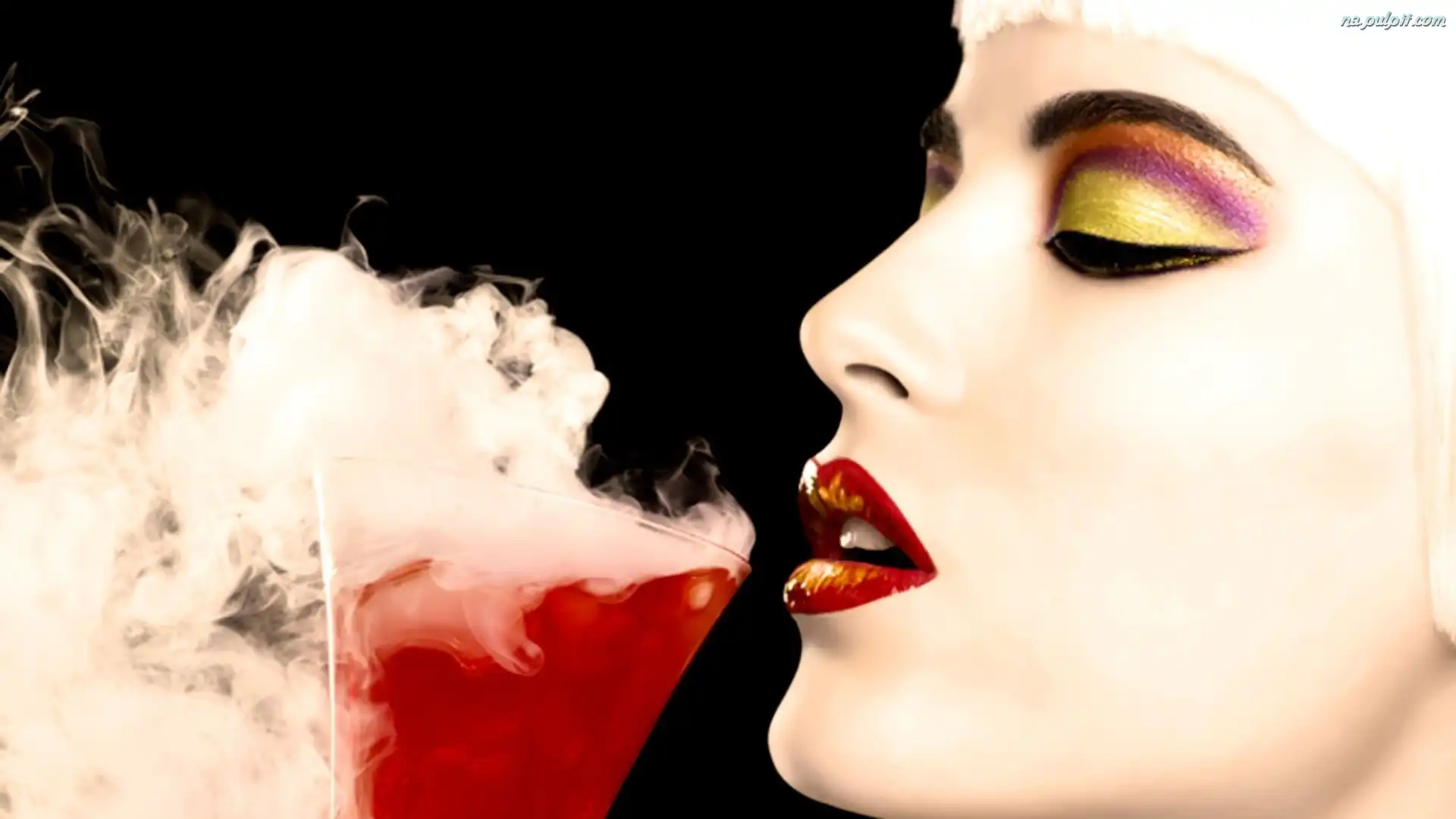 Napój, Makijaż, Kobieta, Dymiący Na Pulpit