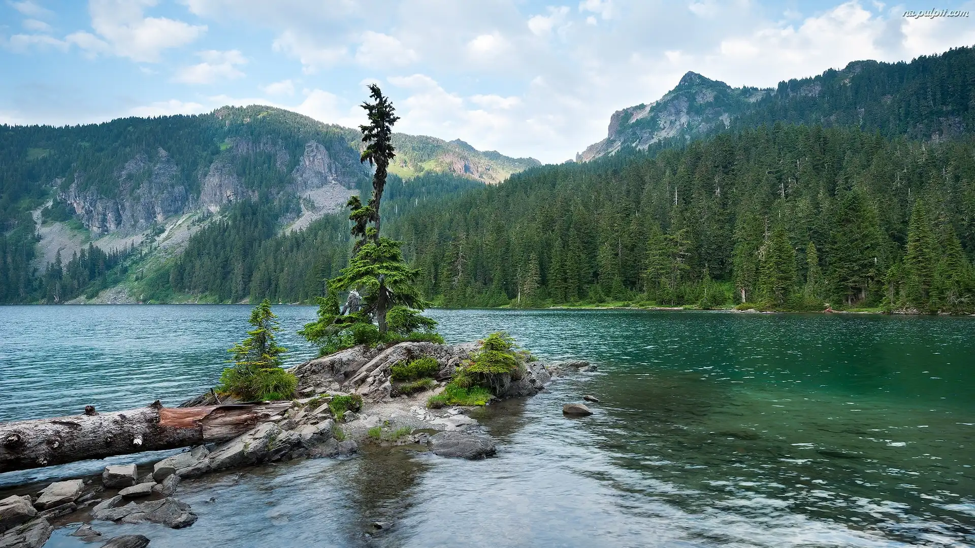 Stany Zjednoczone, Park Narodowy Mount Rainier, Drzewa, Góry, Jezioro, Mowich Lake, Stan Waszyngton Na Pulpit |
