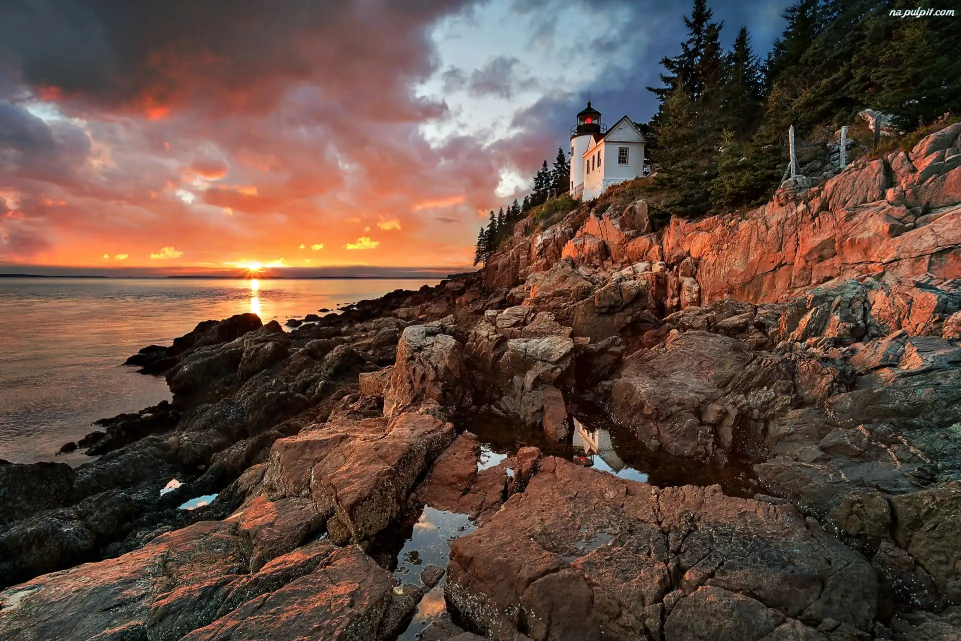 Narodowy, Morska, USA, Maine, Park, Latarnia Na Pulpit