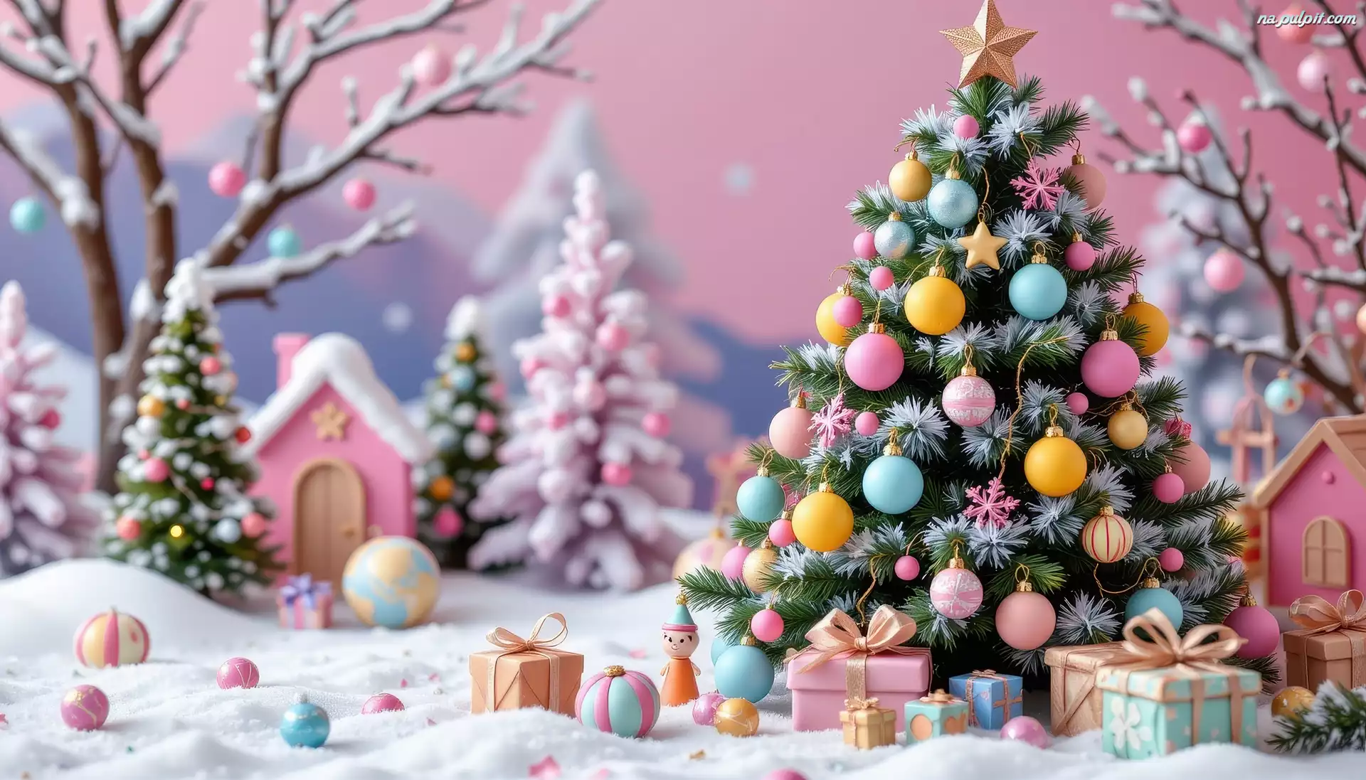 Kolorowa, Choinka, Boże Narodzenie, Grafika AI Na Pulpit