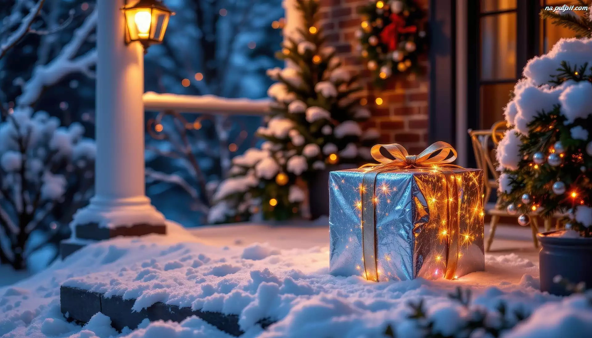 Prezent, Zima, Boże Narodzenie, Grafika AI Na Pulpit