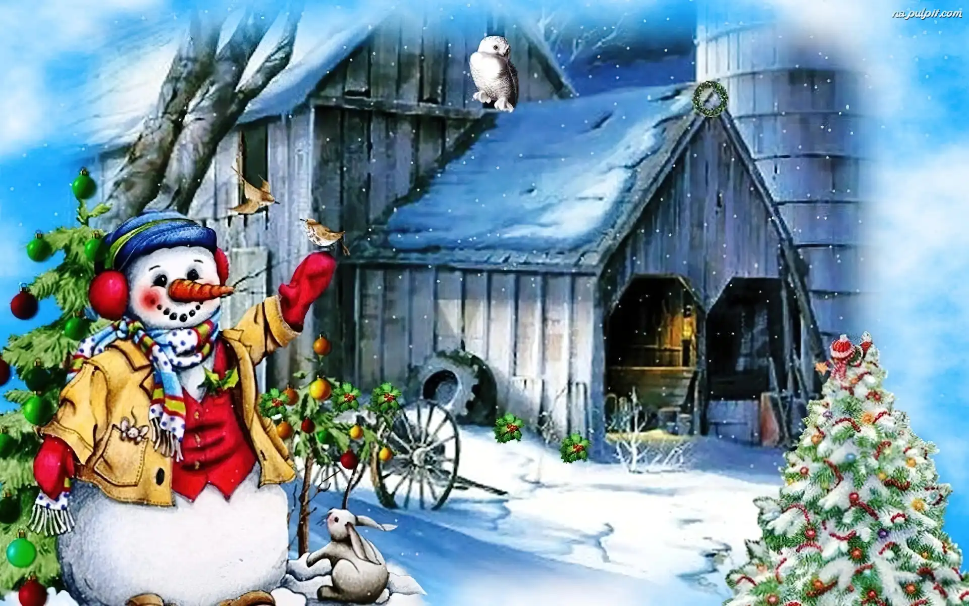 Narodzenie, Choinka, Bałwanek, Boże Na Pulpit