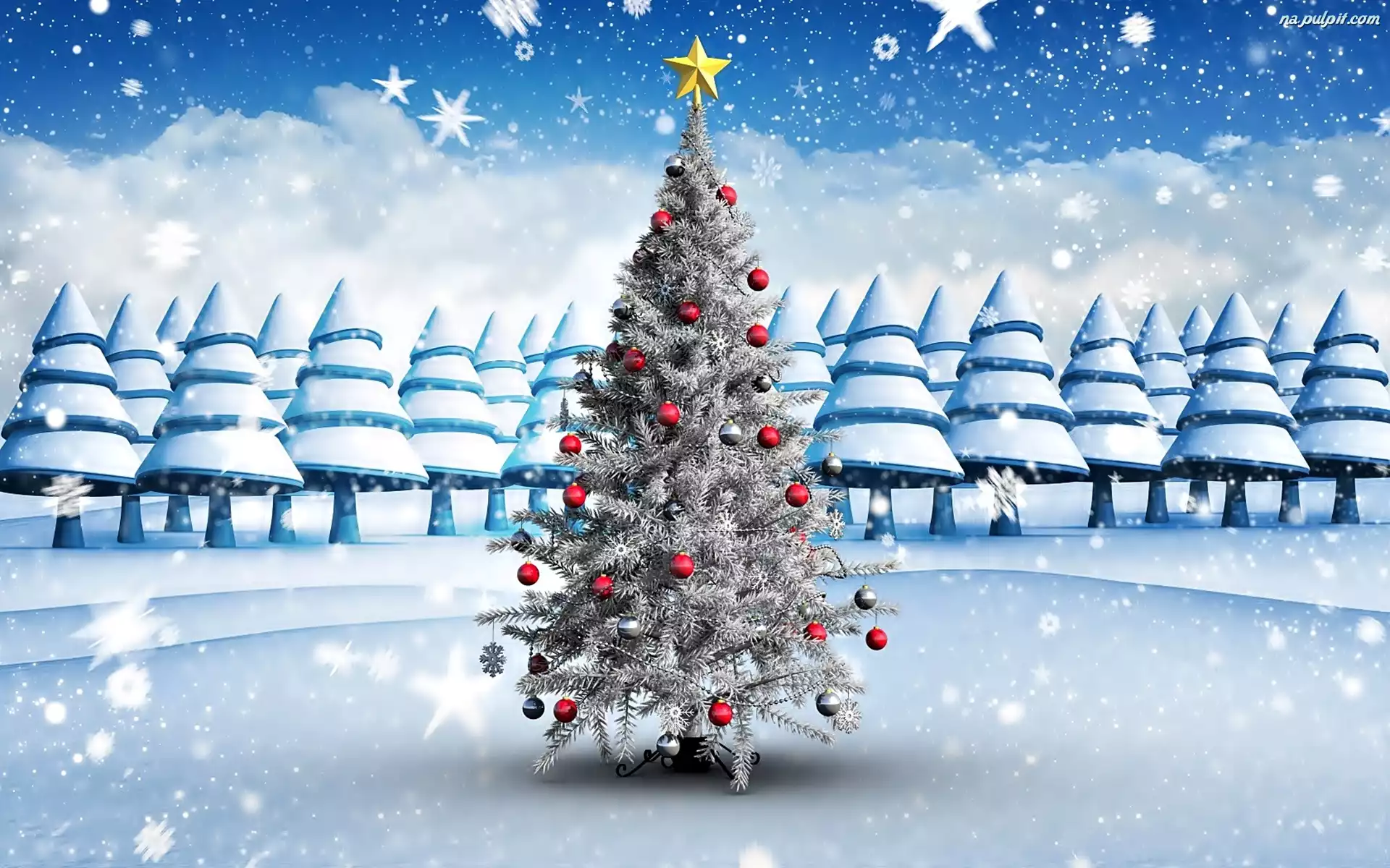 Narodzenie, Gwiazdki, Śnieg, Choinka, Boże, Bombki Na Pulpit
