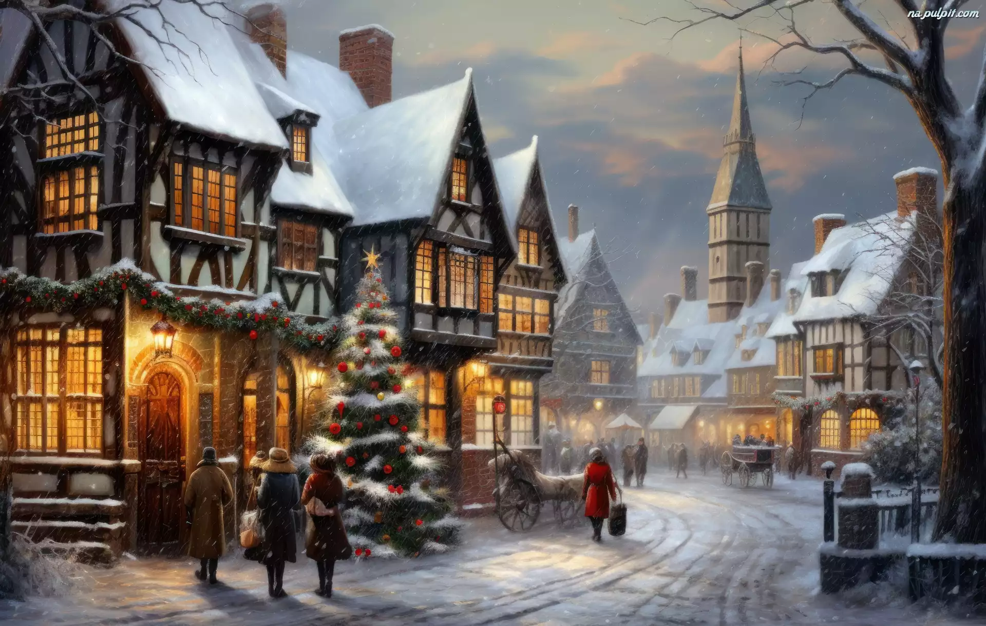 Choinka, Zima, Boże Narodzenie, Miasteczko, Domy Na Pulpit
