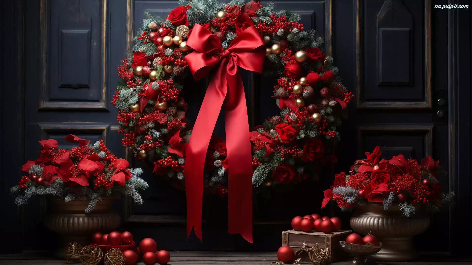Bombki, Wianek, Boże Narodzenie, Wstążka, Kwiaty Na Pulpit