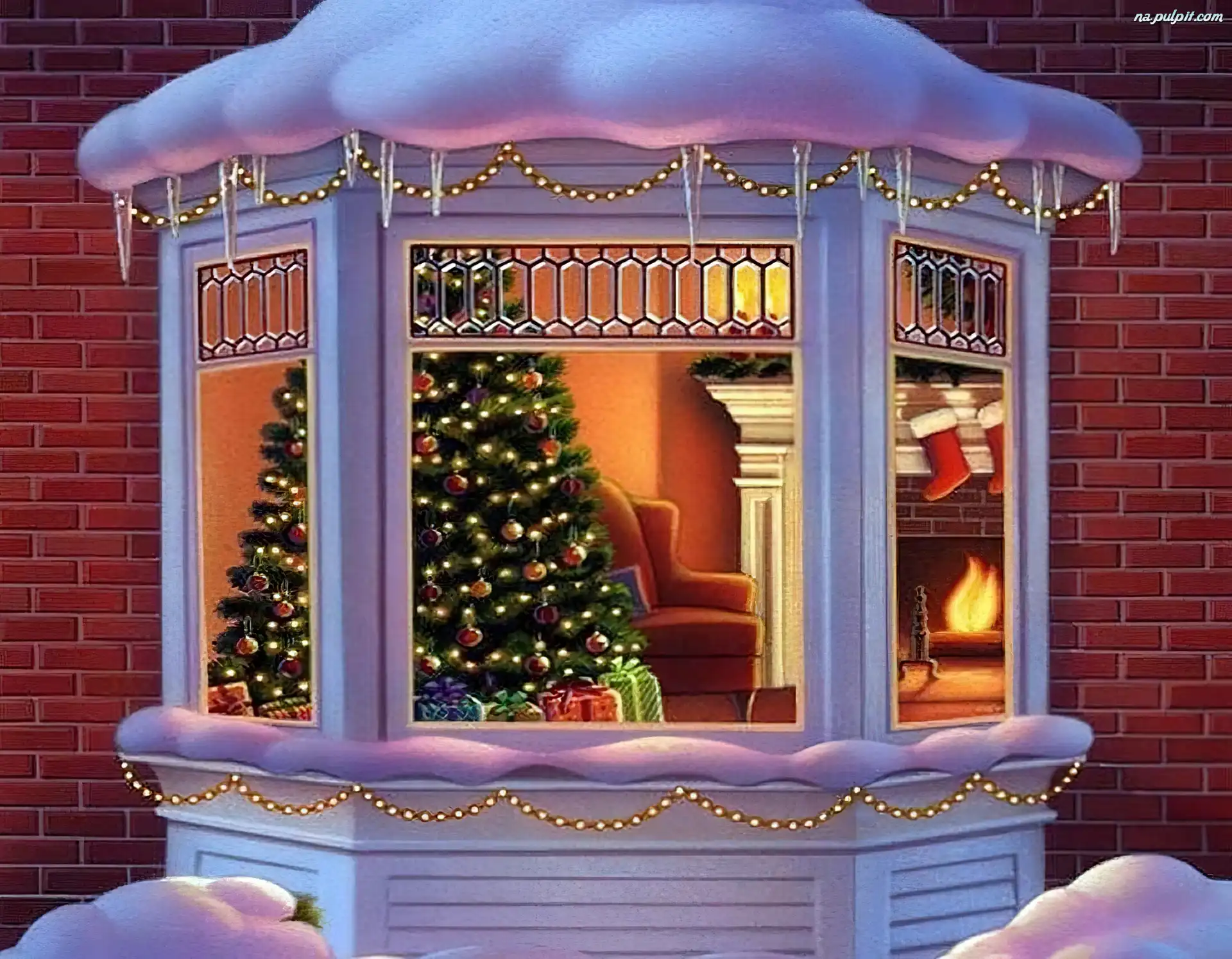 Narodzenie, Zima, Choinka, Okno, Boże Na Pulpit