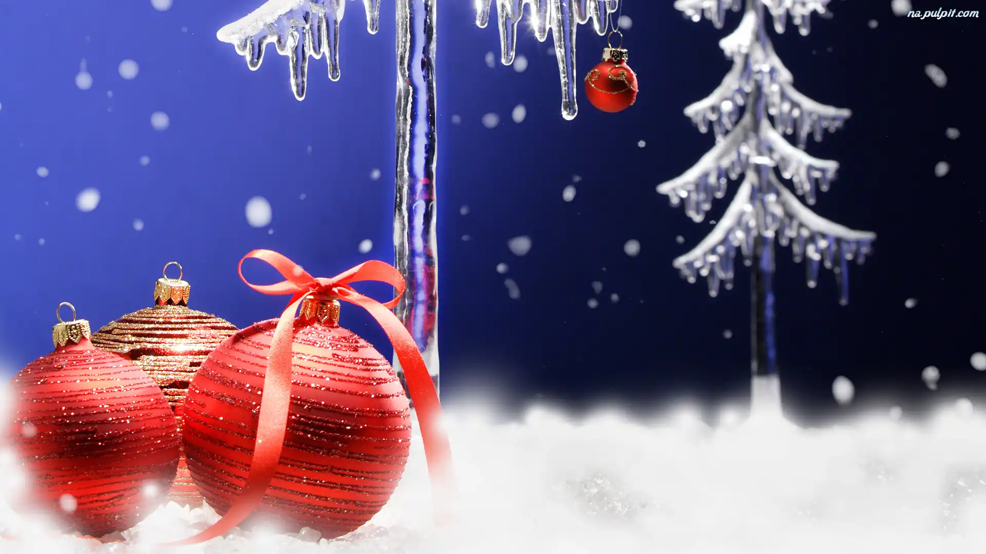Lodu, Narodzenie, Czerwone, Śnieg, Choineczka, Bombki, Boże, Sople Na Pulpit