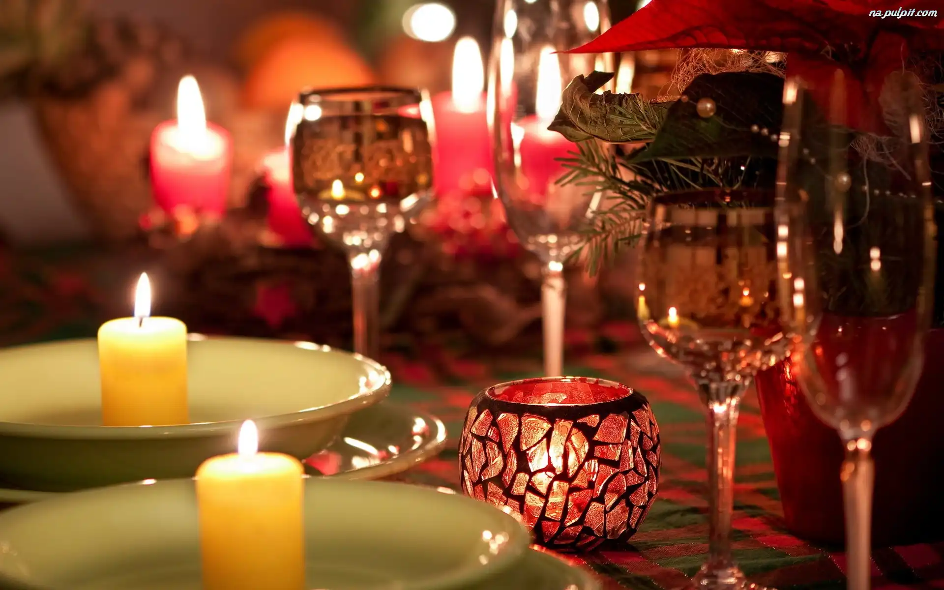 Świąteczna, Stół, Nastrój, Świece, Dekoracja, Kieliszki Na Pulpit