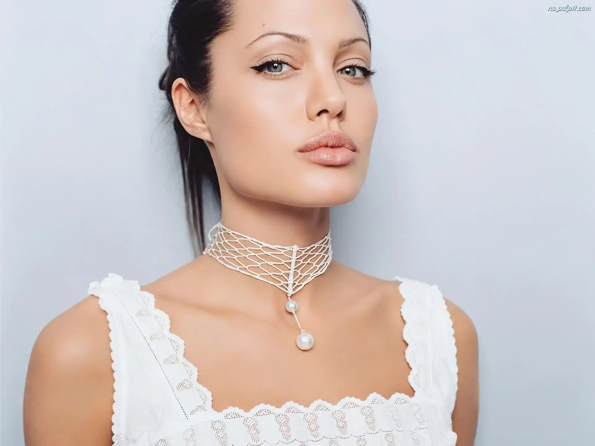 naszyjnik, Angelina Jolie, biały top Na Pulpit