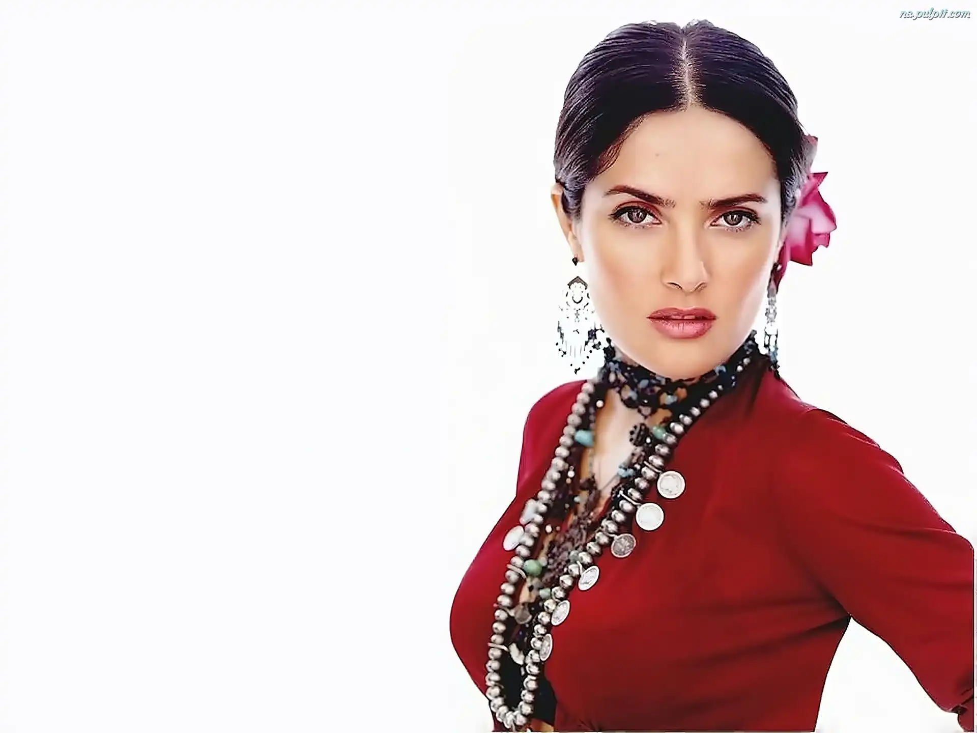Naszyjniki, Czerwona, Salma Hayek, Bluzka