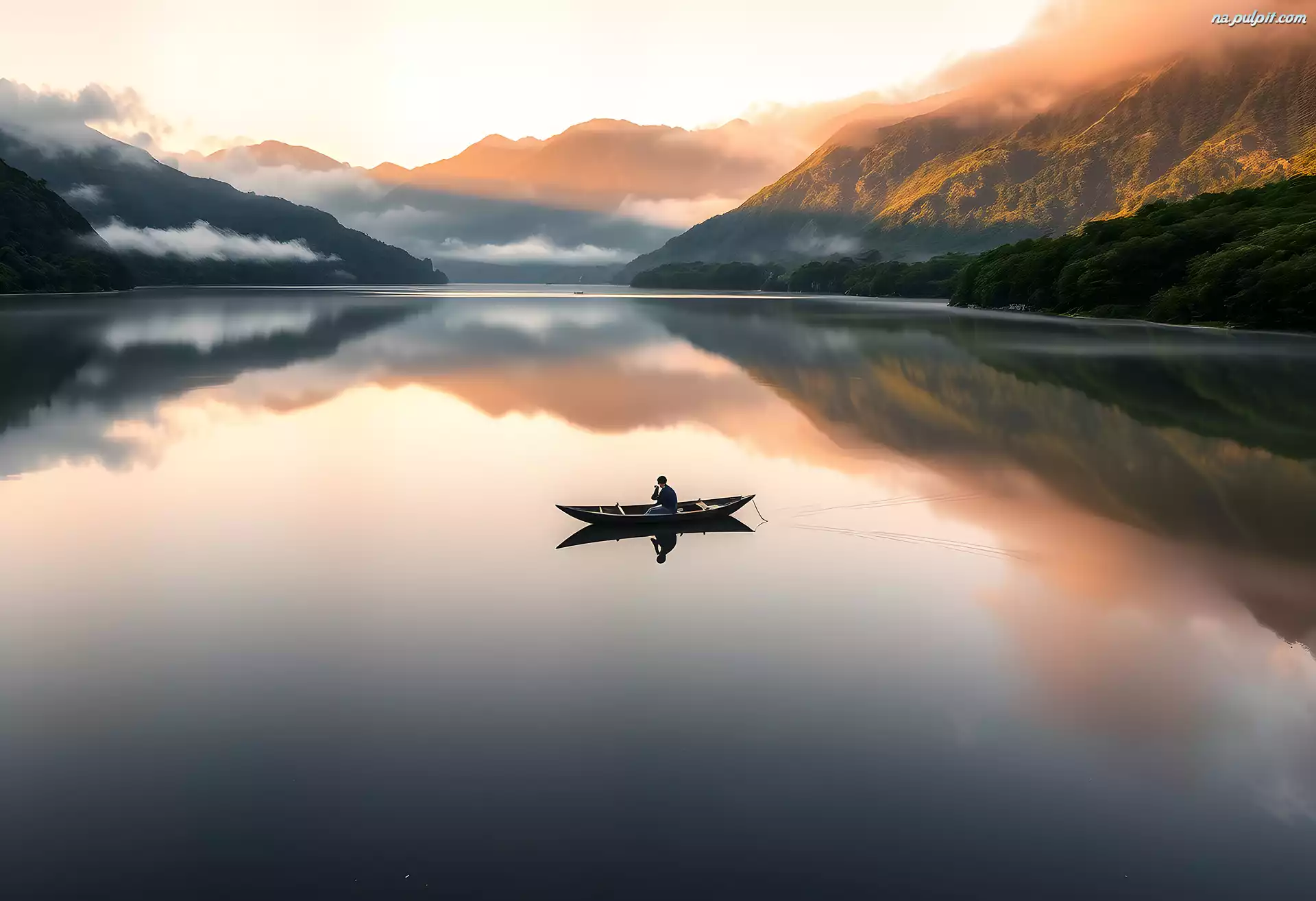 Góry, Krajobraz, Rybak, Jezioro, Grafika, Przyroda, Natura, Mgła, Komputerowa, Łódka, Człowiek Na Pulpit |