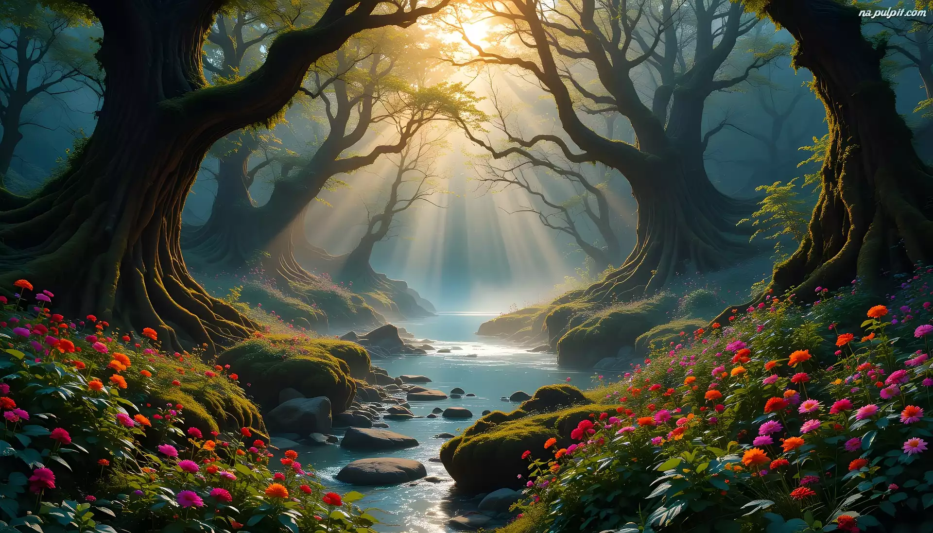 Grafika, Kamienie, Konary, Drzewa, Przyroda, Słońca, Las, Promienie, Natura, Potok, Komputerowa, Kwiaty, Krajobraz, Leśny Na Pulpit |
