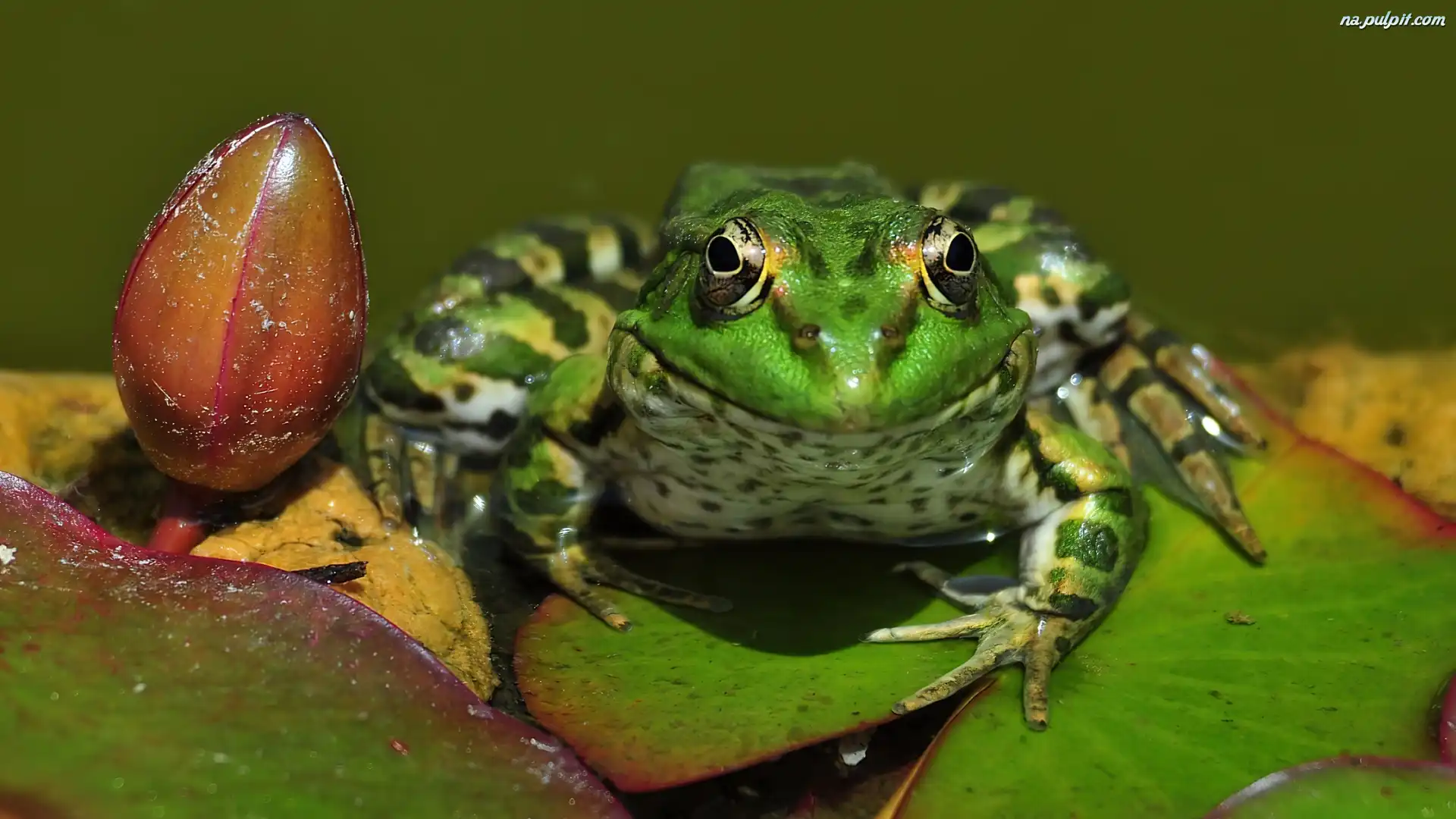 Nenufaru, Żaba, Zielona, Pąk Na Pulpit