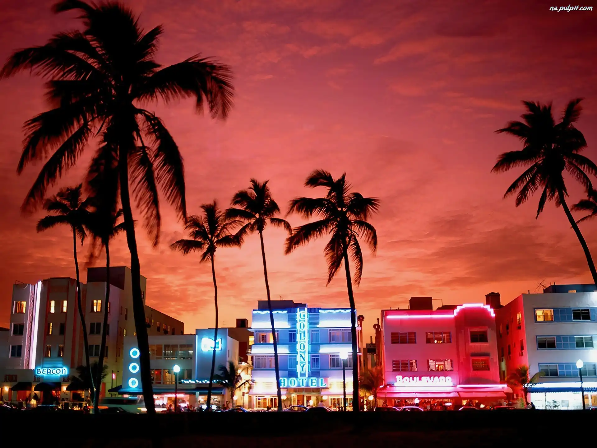 Neony, Miami, Floryda, Hotele Na Pulpit