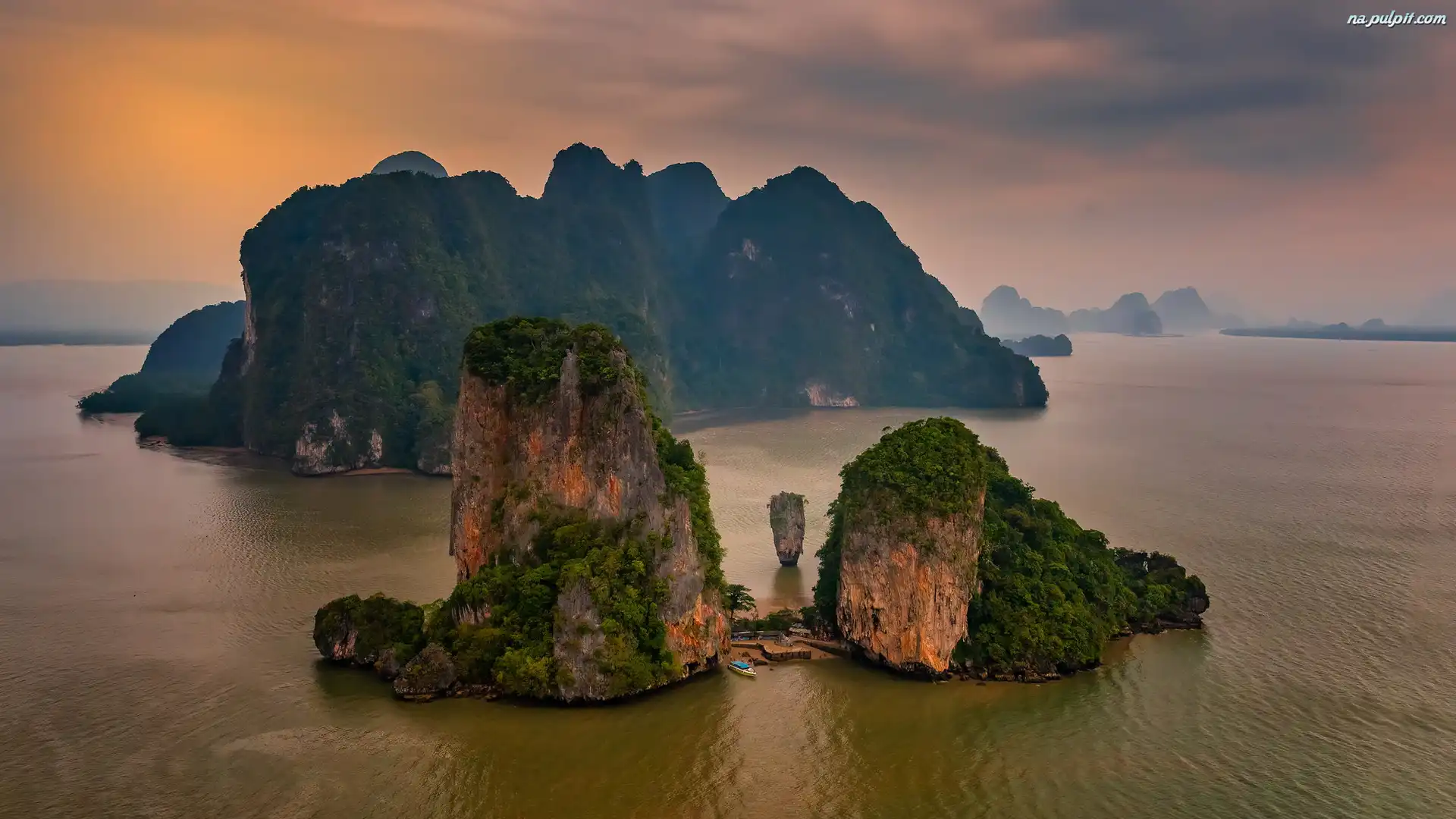 Tajlandia, Skały, Morze Andamańskie, Lasy, Wyspy, Góry, Zatoka Phang Nga Na Pulpit