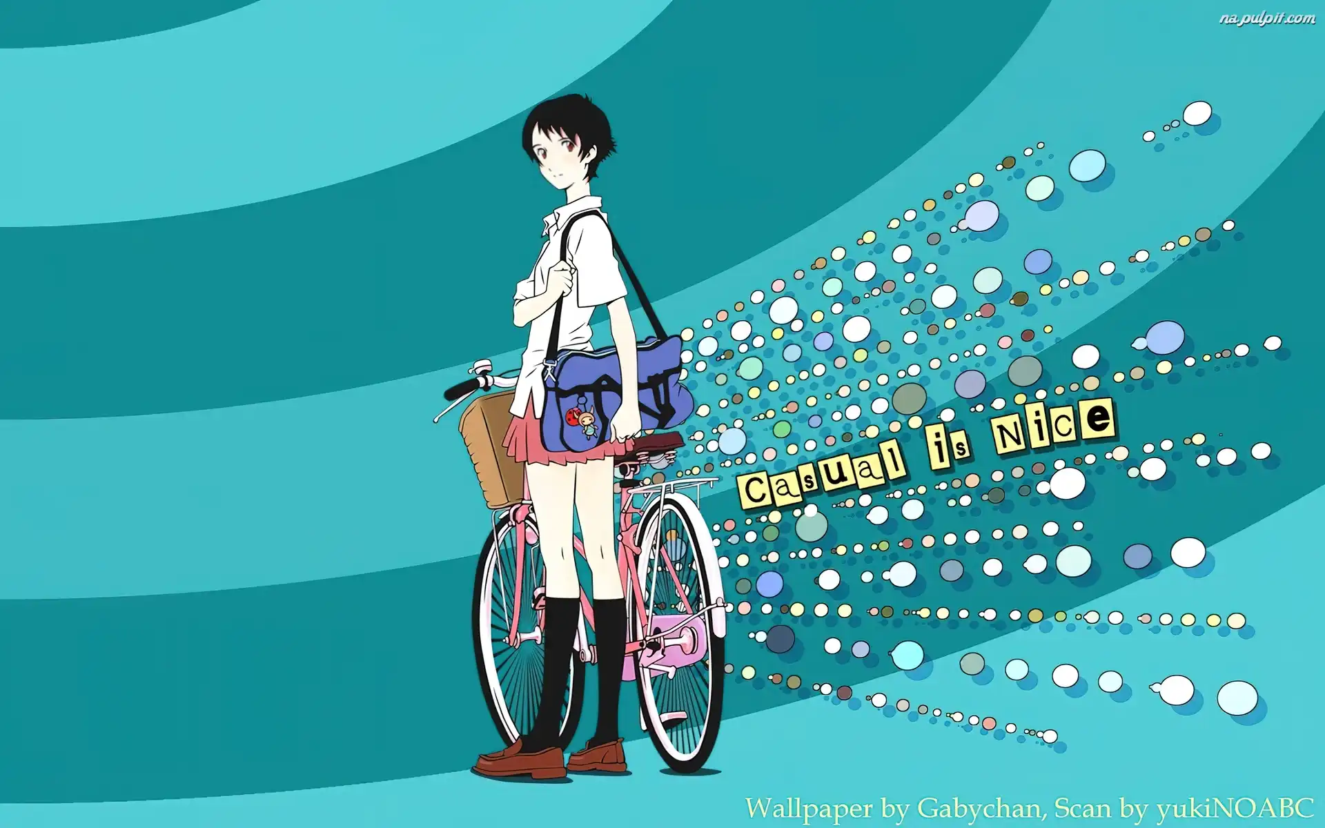 Rower, Toki wa Kakeru Shoujo, Ulica torba, Toki wa Kakeru Shoujo, spudniczka Bohaterów, Toki wa Kakeru Shoujo, Rysunki Chiaki, Toki wa Kakeru Shoujo, Makoto Nice, Toki wa Kakeru Shoujo, Rower