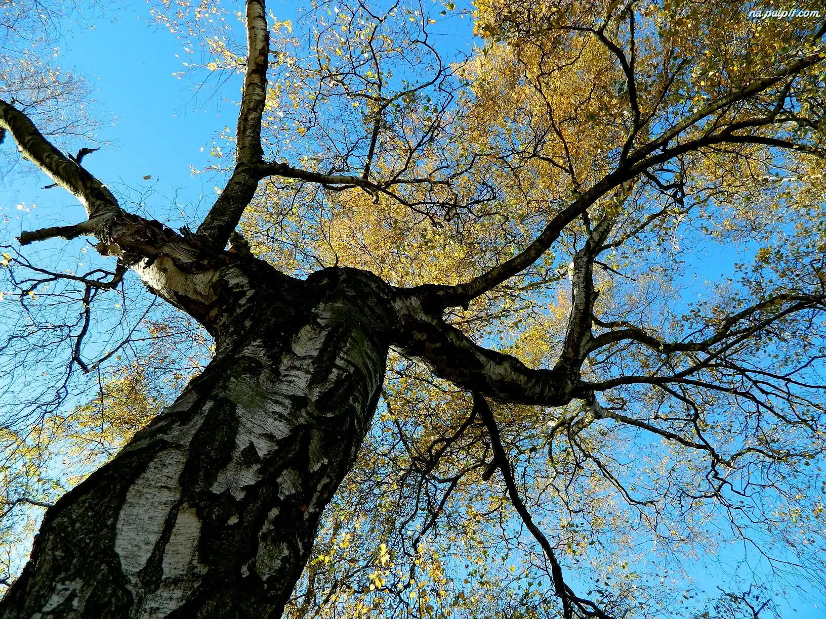 Nieba, Liście, Brzoza, Jesień, Błękit Na Pulpit