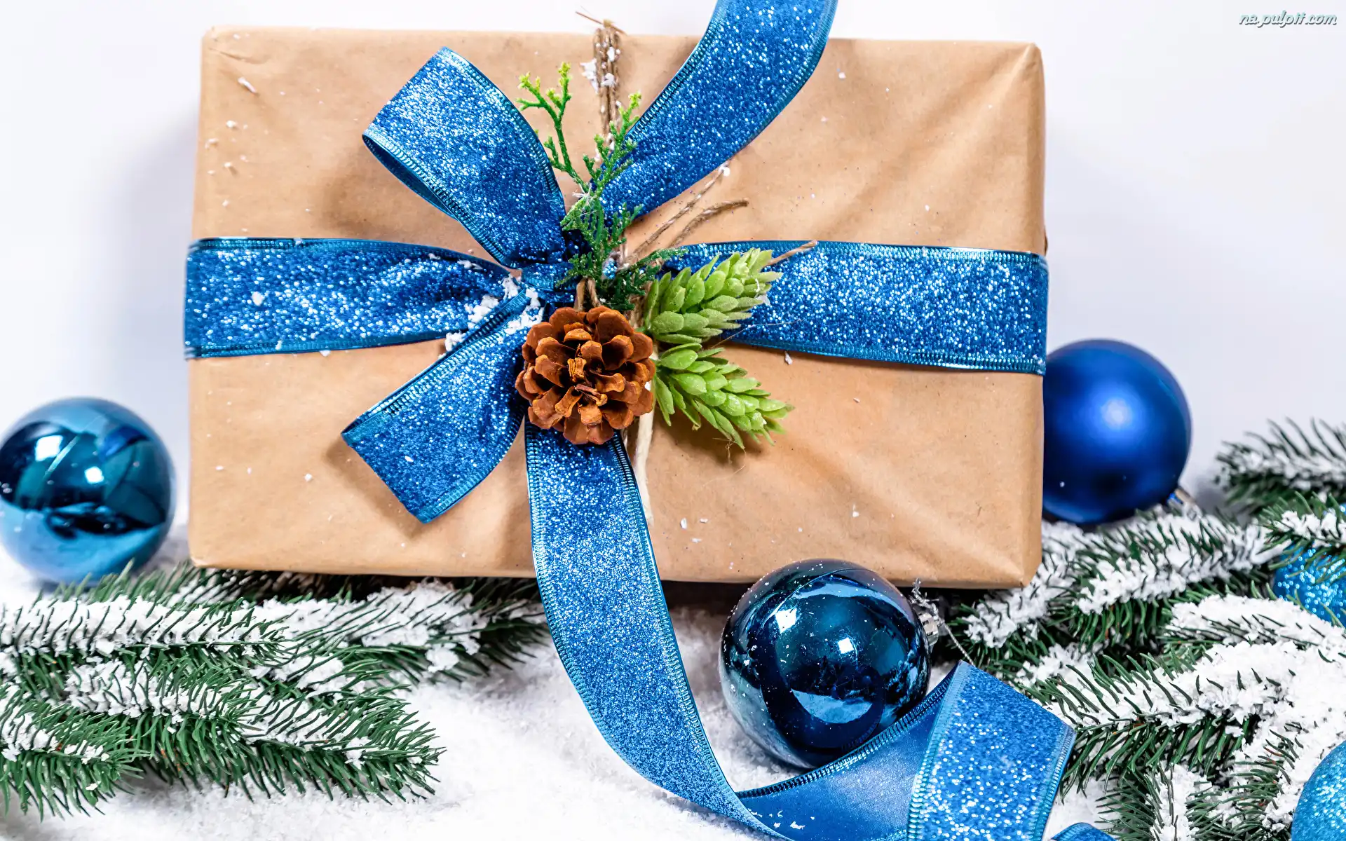 Szyszki, Niebieska, Bombki, Gałązki, Kokarda, Prezent, Świerkowe Na Pulpit