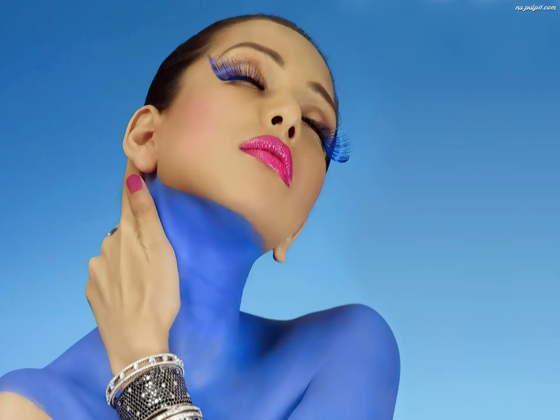 Niebieski, Makijaż, Kobieta, Dłoń Na Pulpit