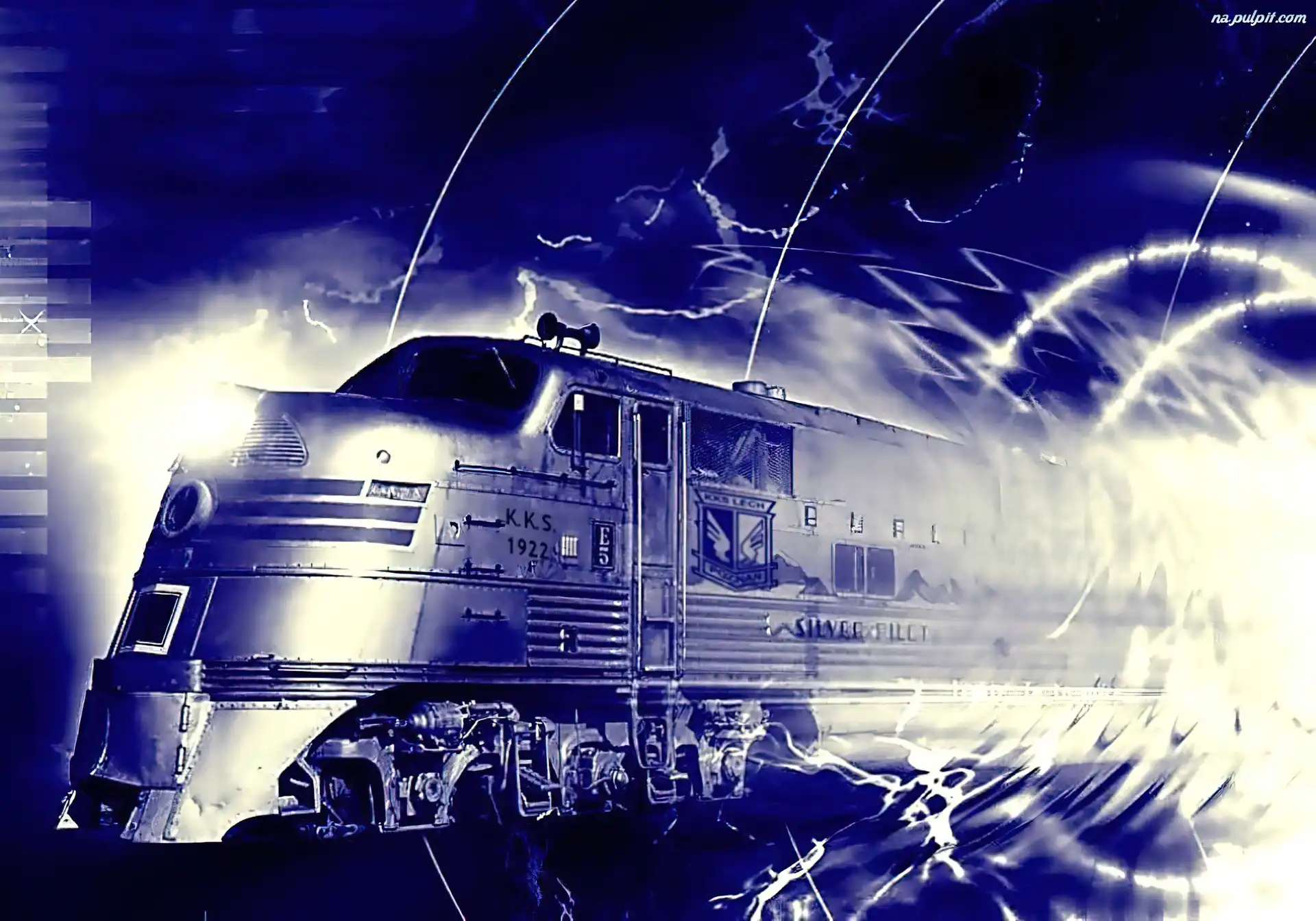 Pociąg, Niebieski, Biały Na Pulpit