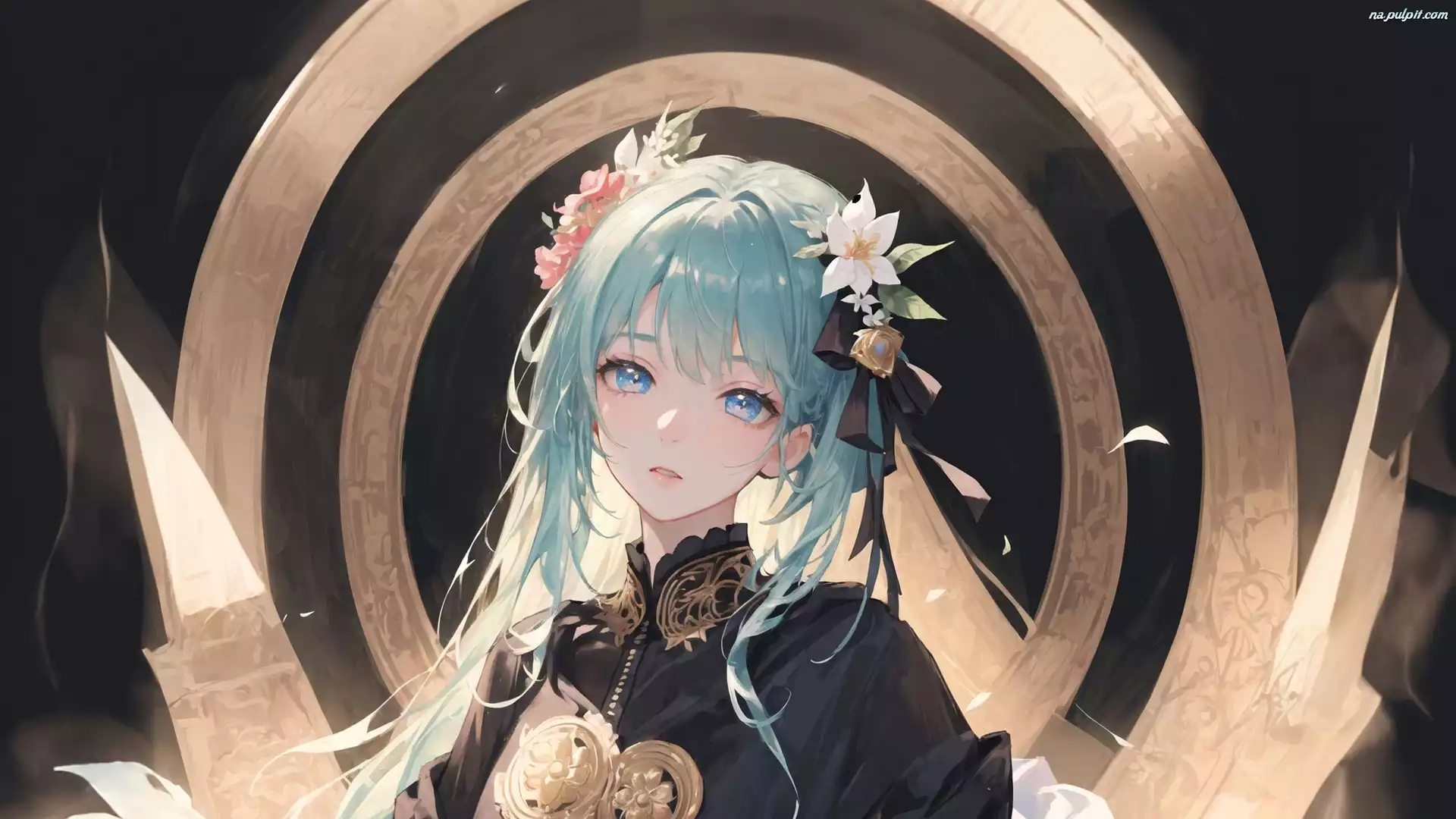 Włosy, Dziewczyna, Sukienka, Niebieskie, Biżuteria, Anime Na Pulpit