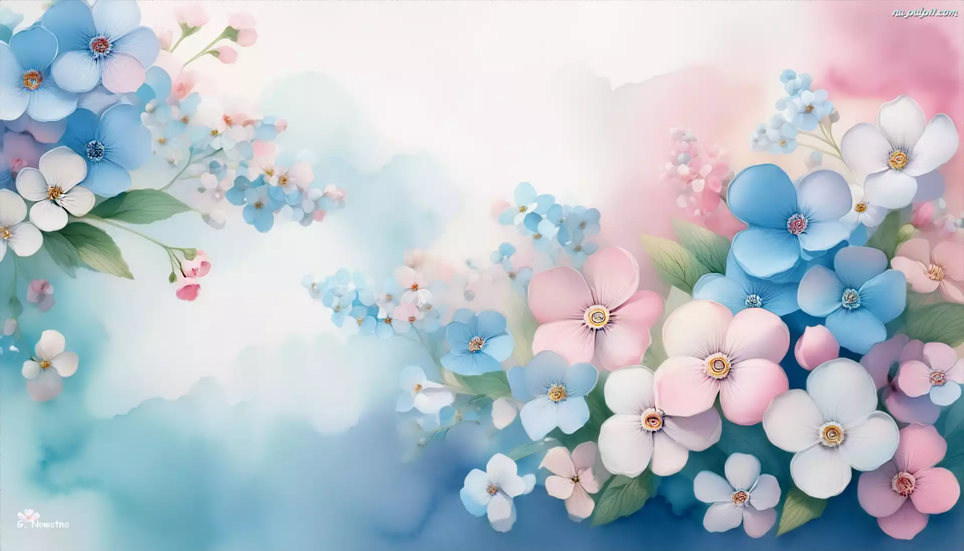 Kwiaty, Niebieskie, Białe, Grafika, Różowe Na Pulpit