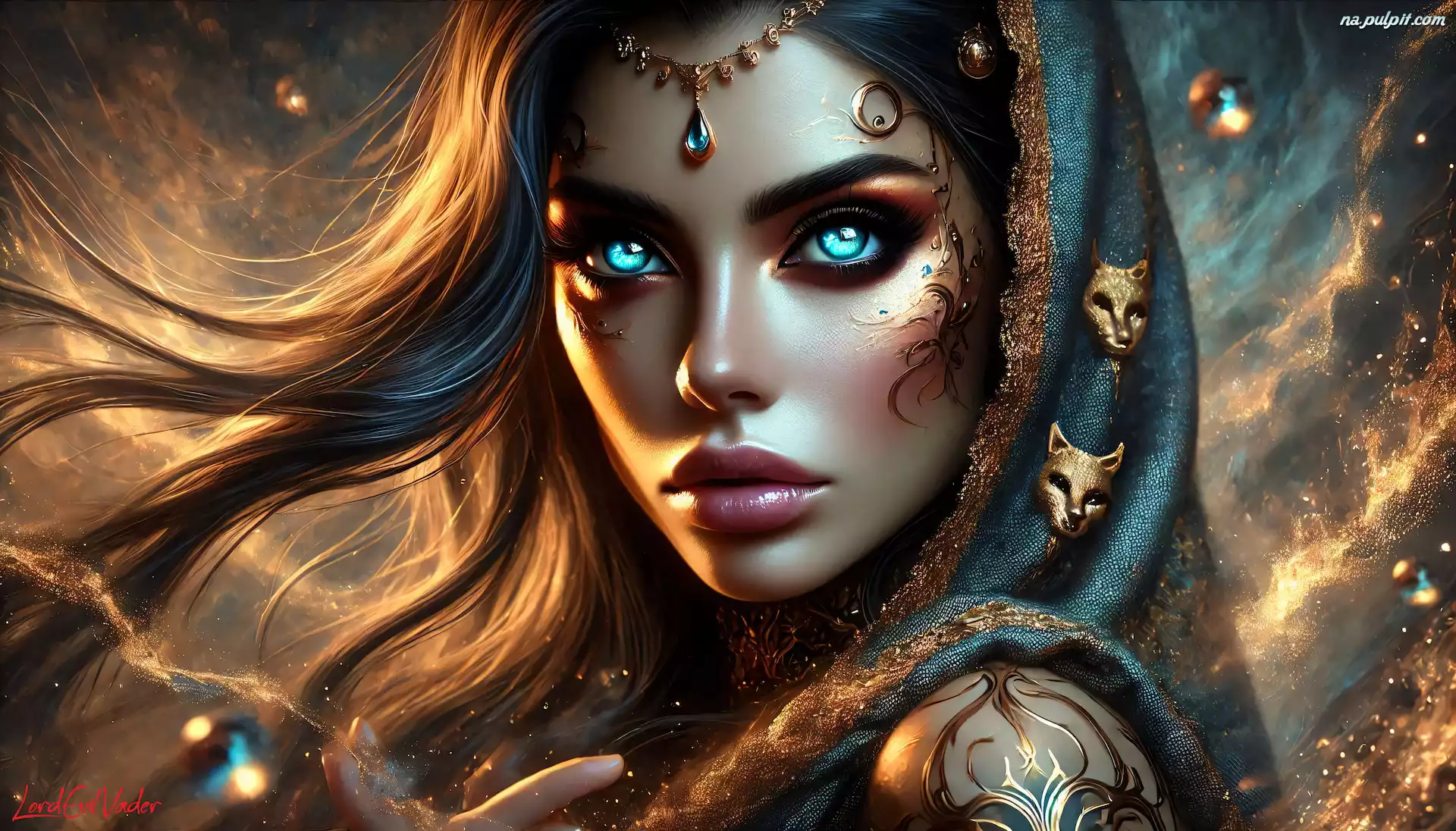 Oczy, Kobieta, Grafika, Niebieskie, Chusta, Biżuteria Na Pulpit
