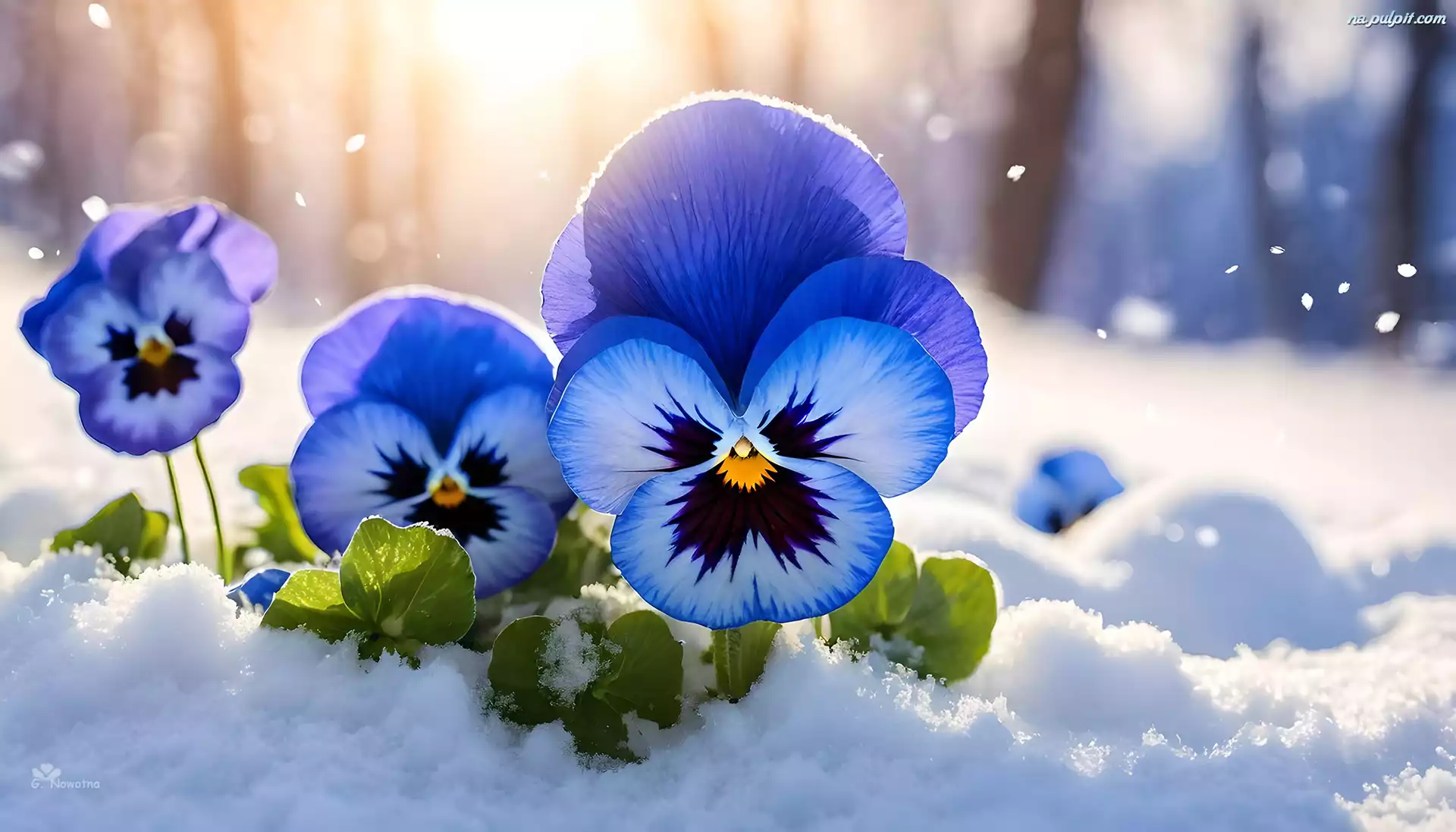 Åšnieg, Niebieskie, Bratki, Grafika, Kwiaty Na Pulpit