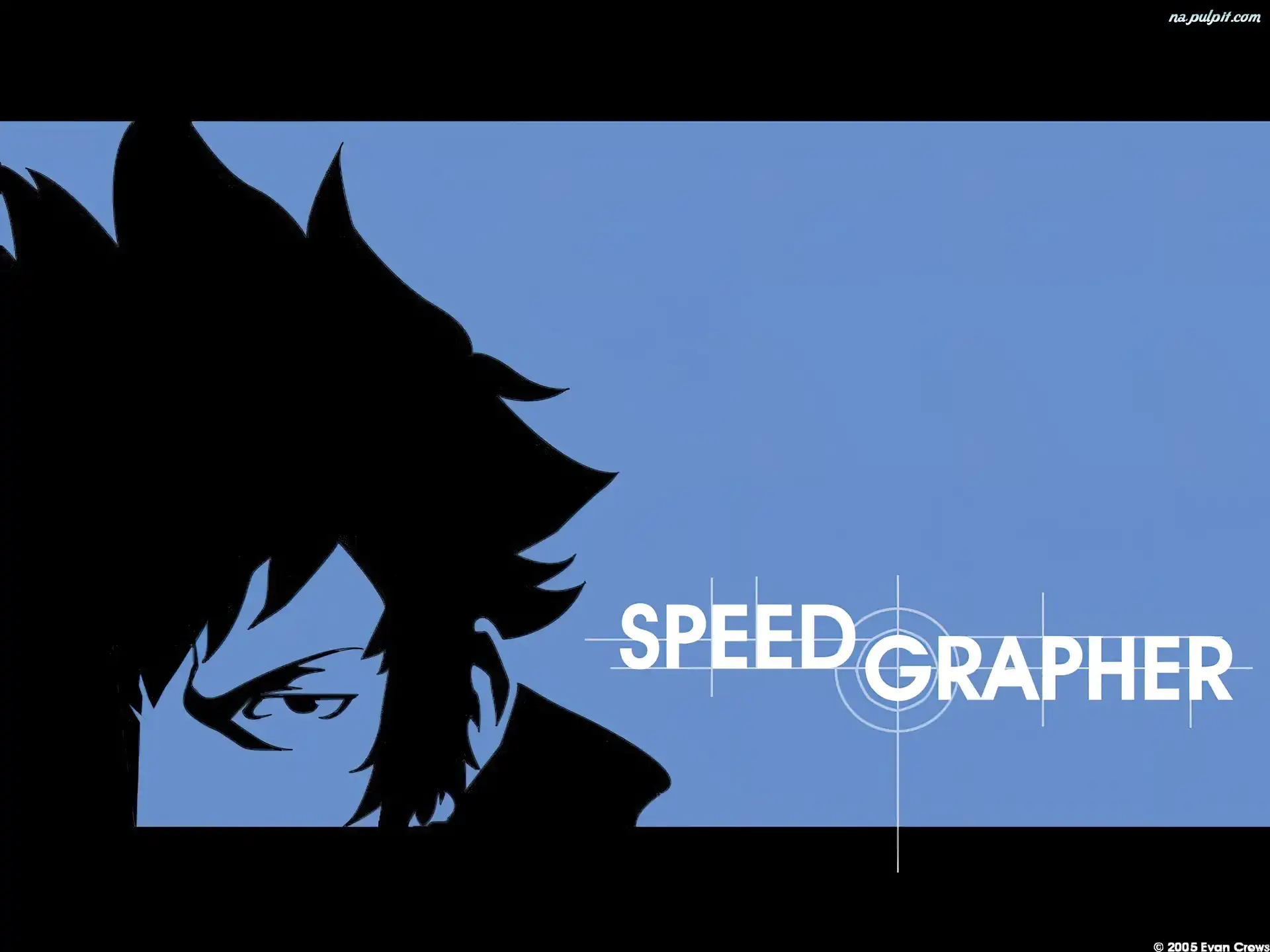niebieskie tło, Speed Grapher, czarna postac Na Pulpit