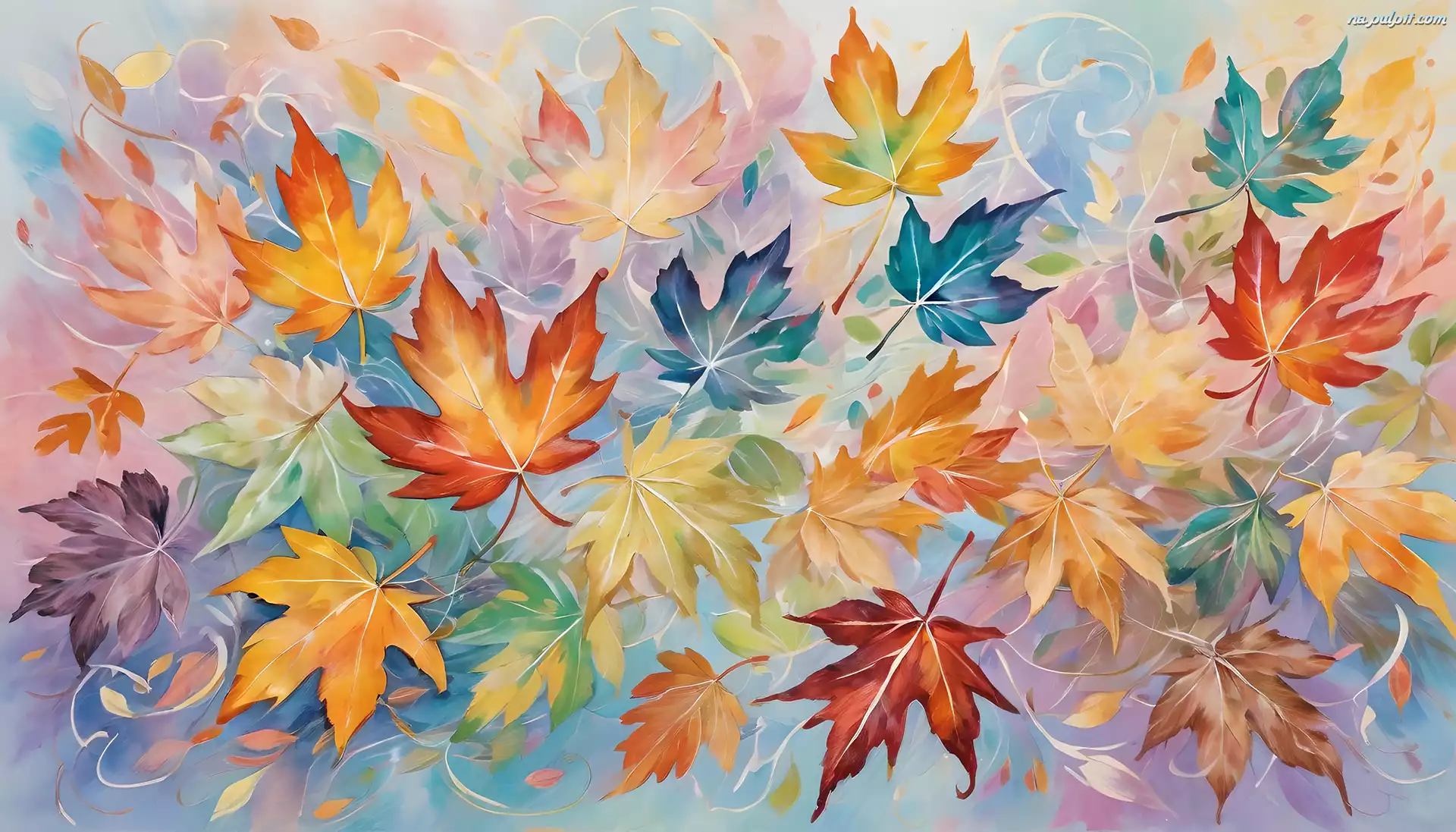 Liście, Kolorowe, Brązowe, Niebieskie, Żółte, Grafika Na Pulpit