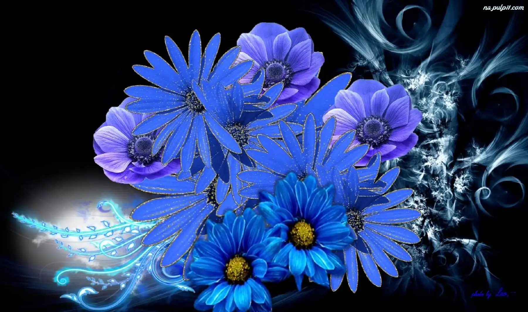 Grafika, Niebieskie, Kwiaty Na Pulpit