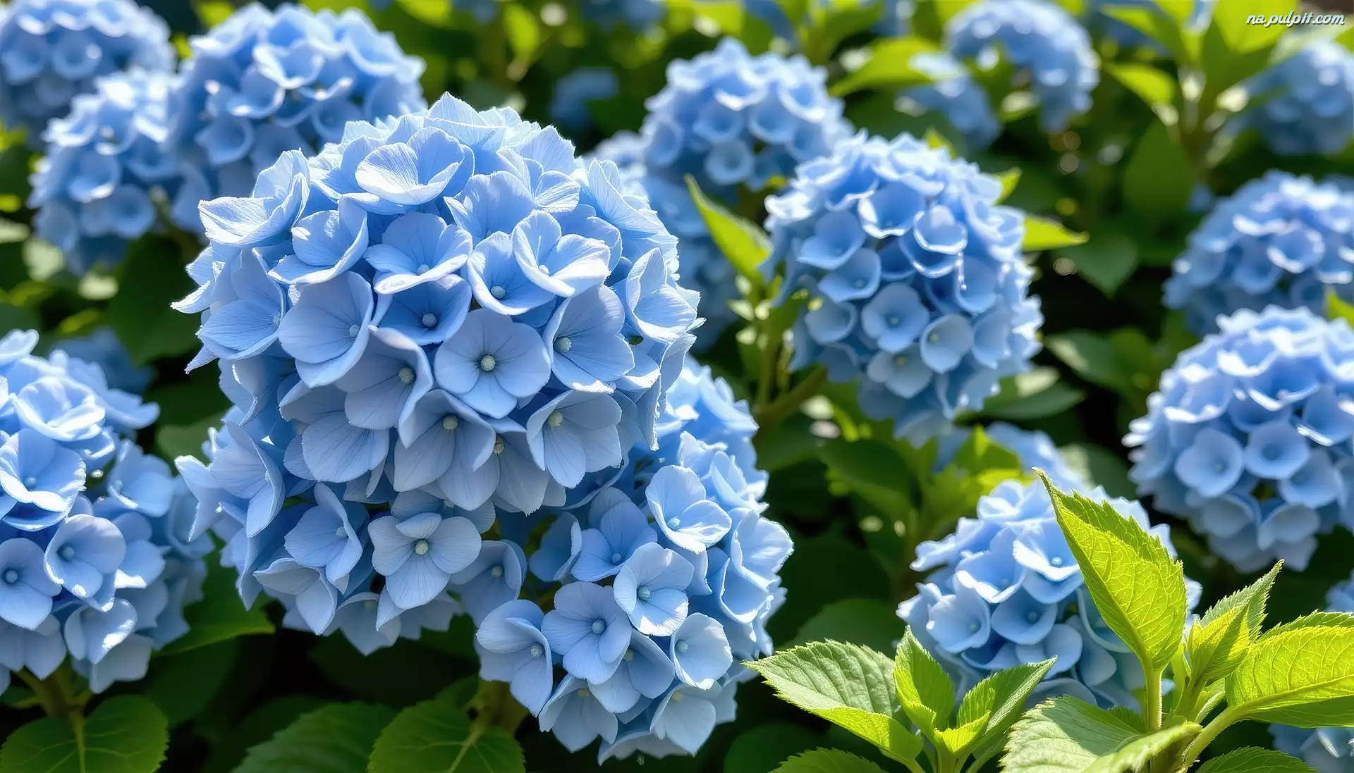 Hortensja, Niebieskie, Kwiaty, Grafika AI Na Pulpit