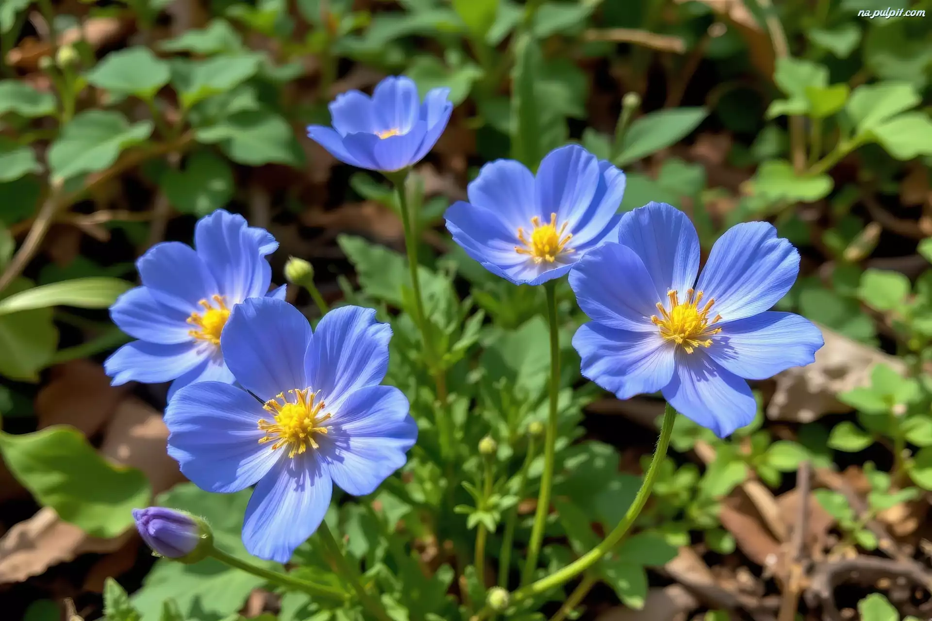 Niebieskie, Rozwinięte, Kwiaty Na Pulpit
