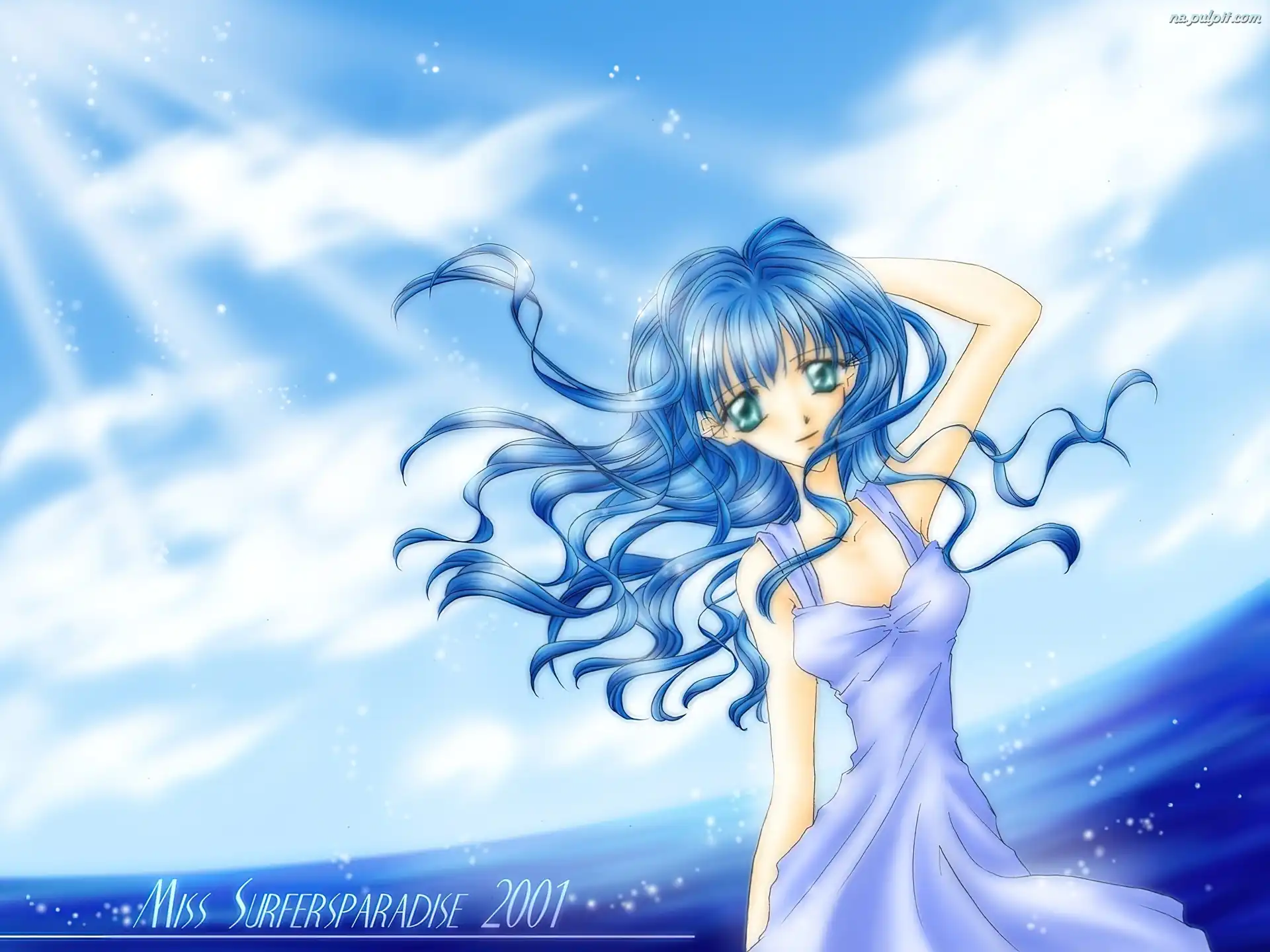 niebieskie włosy, Miss Surfersparadise, sukienka Na Pulpit