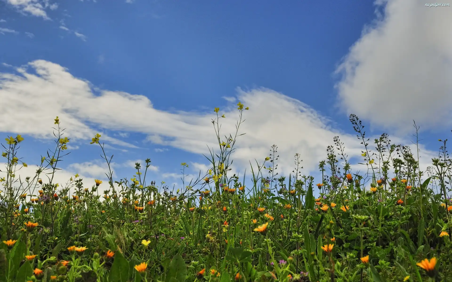 Niebo, Kwiatki, Łąka, Trawy Na Pulpit