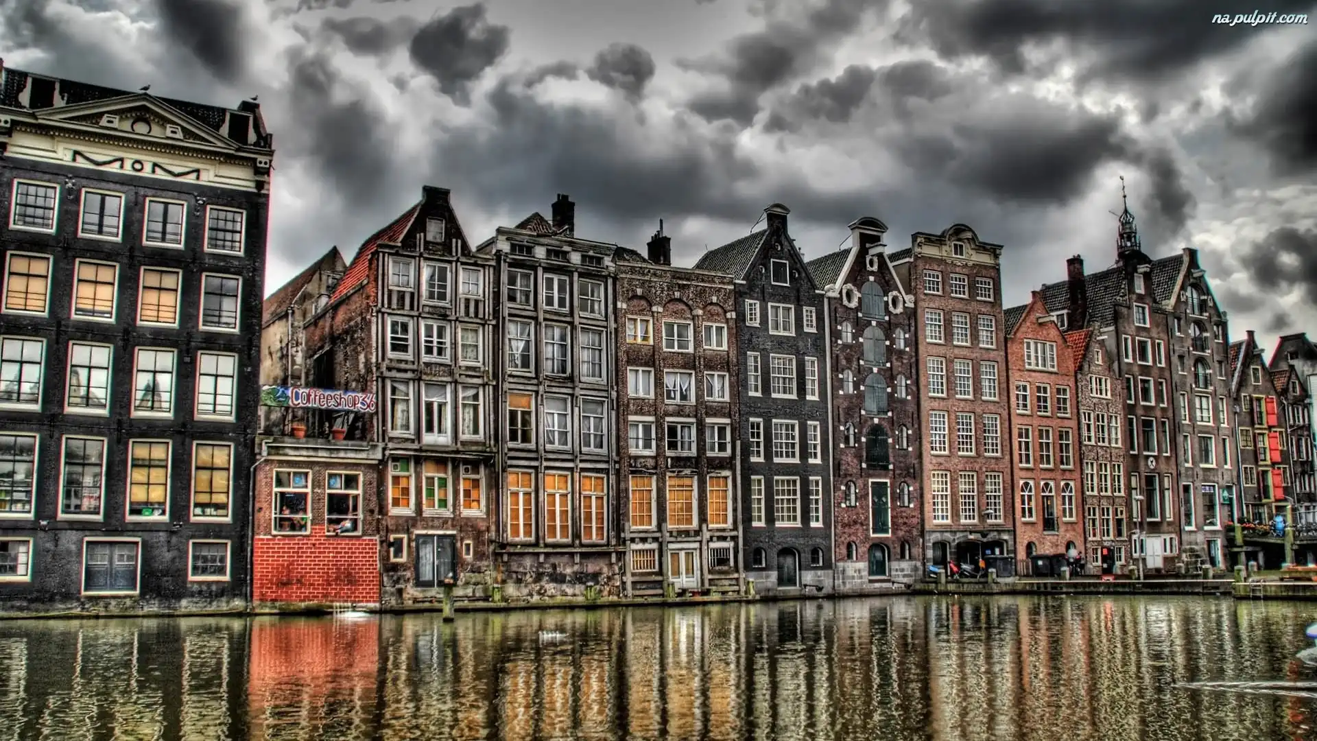 Niebo, Nad Kanałem, Kamieniczki, Amsterdam, Pochmurne Na Pulpit