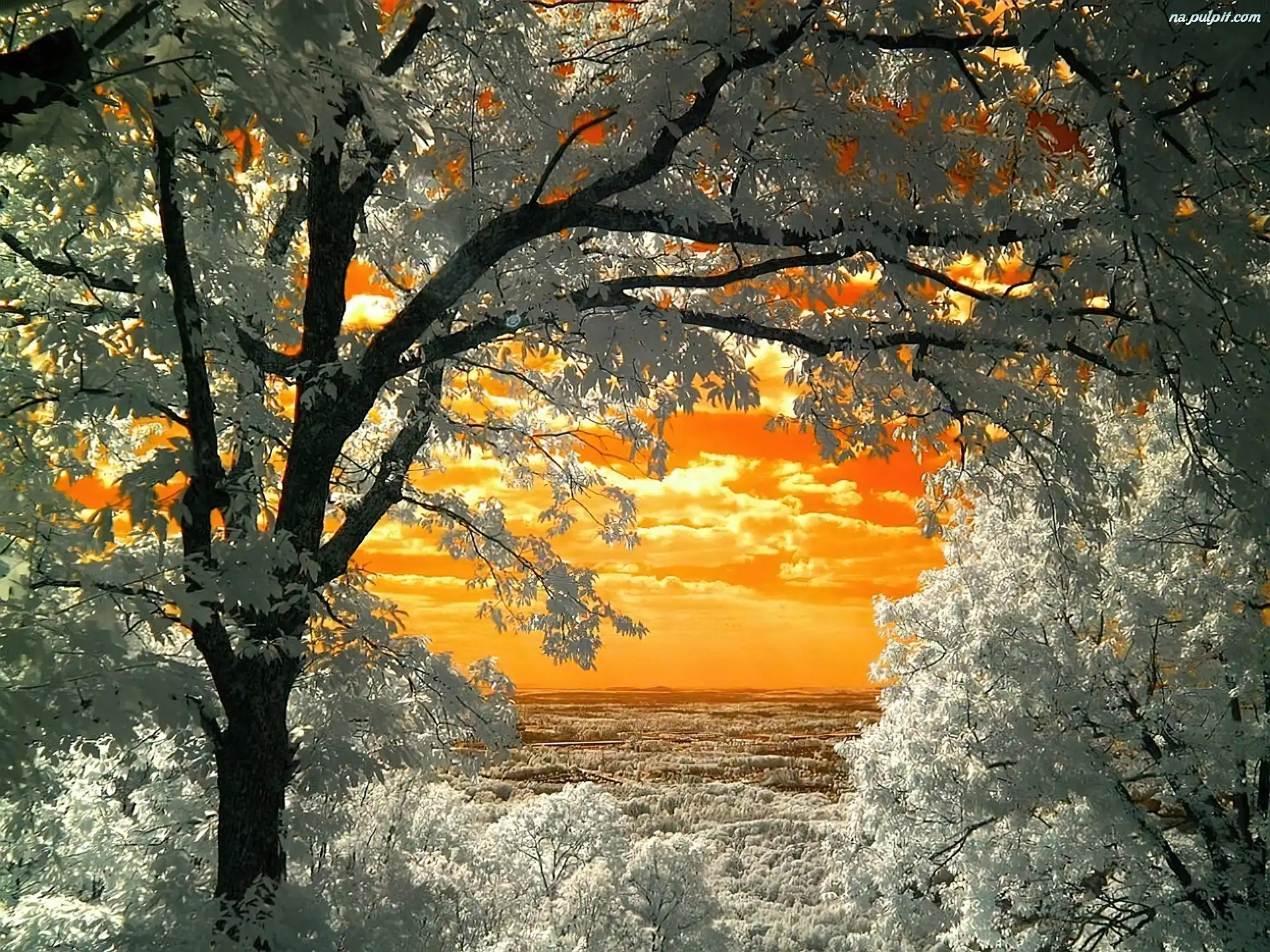 Niebo, Drzewa, Białe, Chmury Na Pulpit