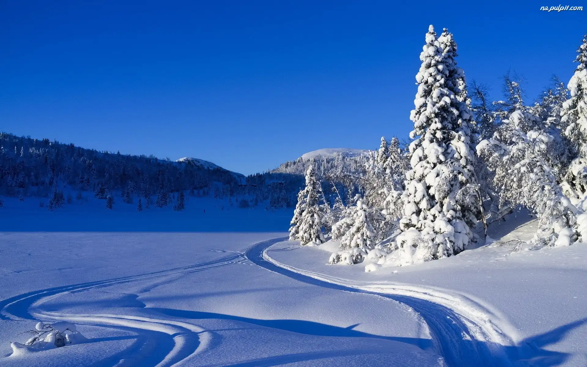 Niebo, Śnieg, Choinki, Góry Na Pulpit