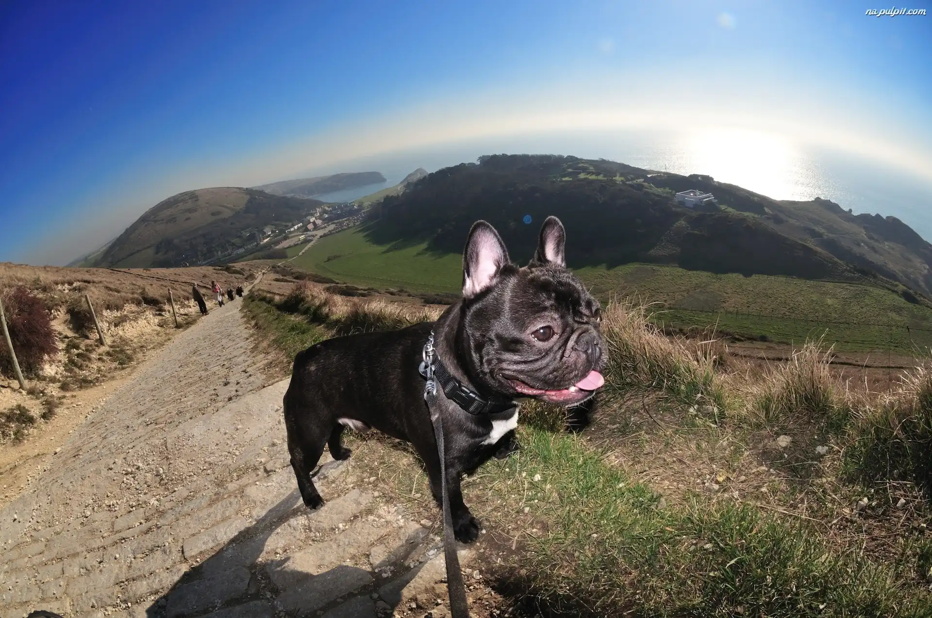 Niebo, Droga, Buldog Francuski, Trawa Na Pulpit