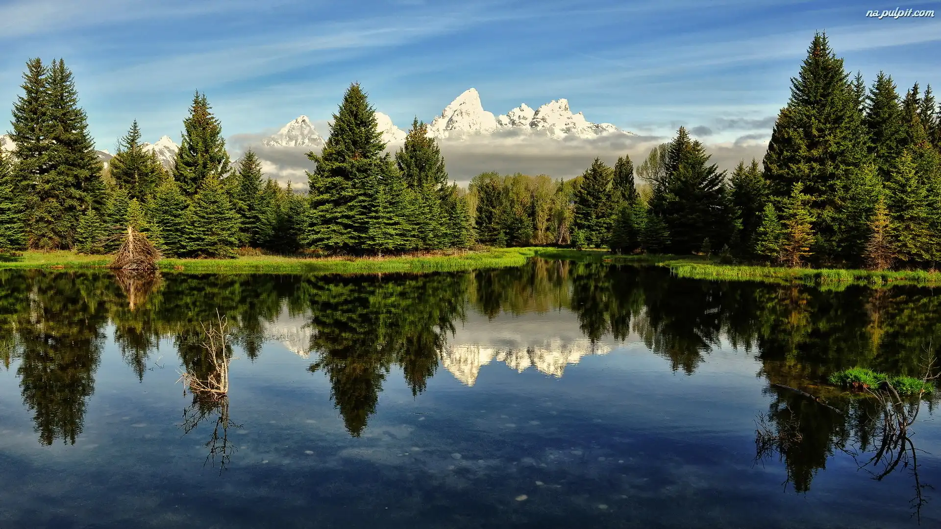 Niebo, Drzewa, Góry, Woda Na Pulpit