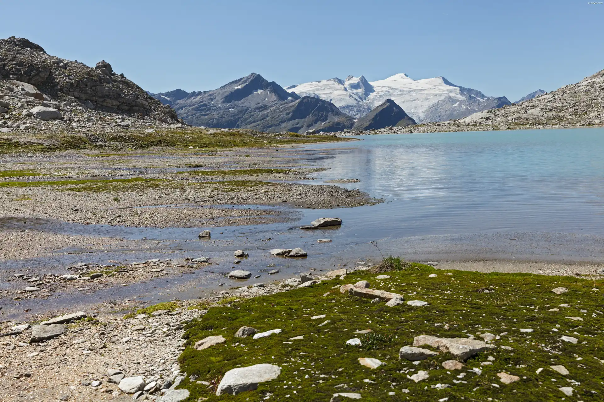 Niebo, Kamienie, Jezioro, Góry, Trawa Na Pulpit