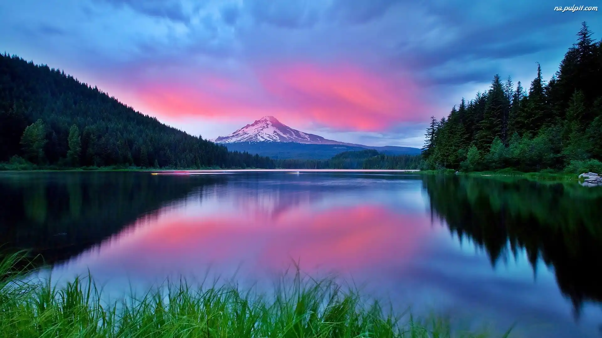 Niebo, Jezioro, Góry, Różowe Na Pulpit