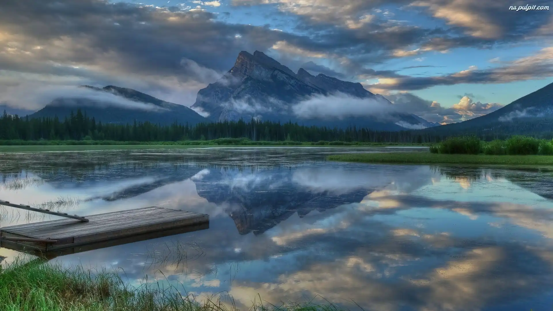 Niebo, Jezioro, Góry, Zachmurzone Na Pulpit