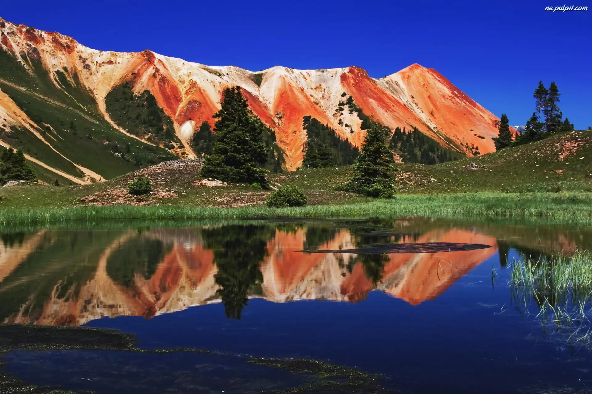 Niebo, W, Jeziorze, Lustrzane, Góry, Odbicie Na Pulpit