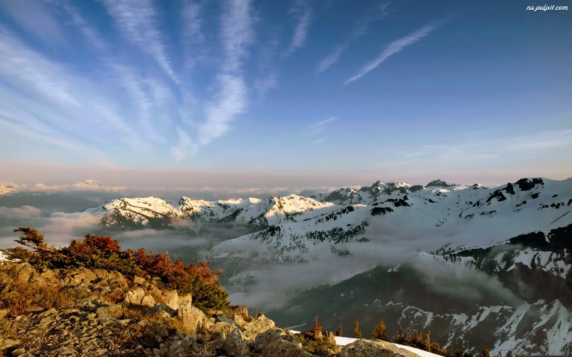 Niebo, Śnieg, Góry, Mgła Na Pulpit