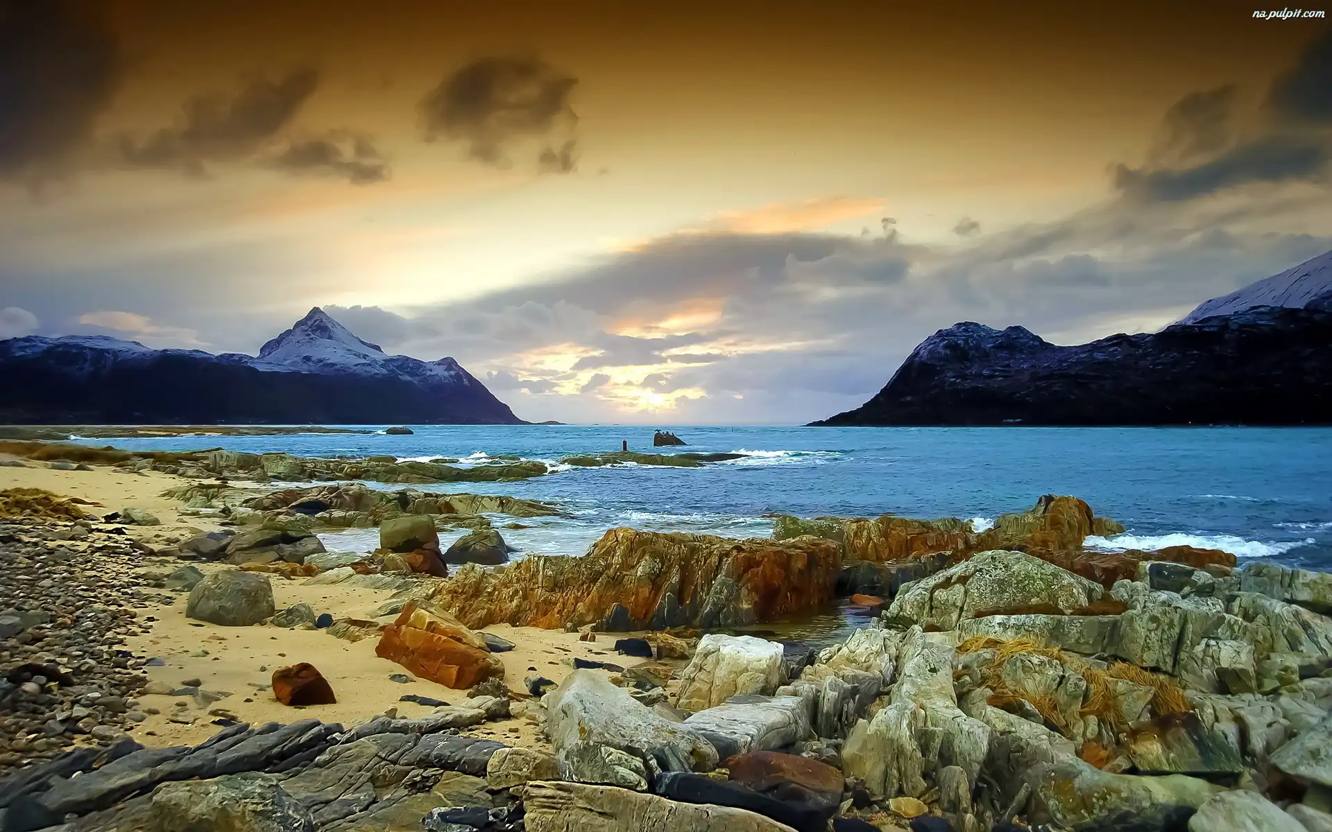 Niebo, Kamienie, Woda, Góry, Zachmurzone Na Pulpit