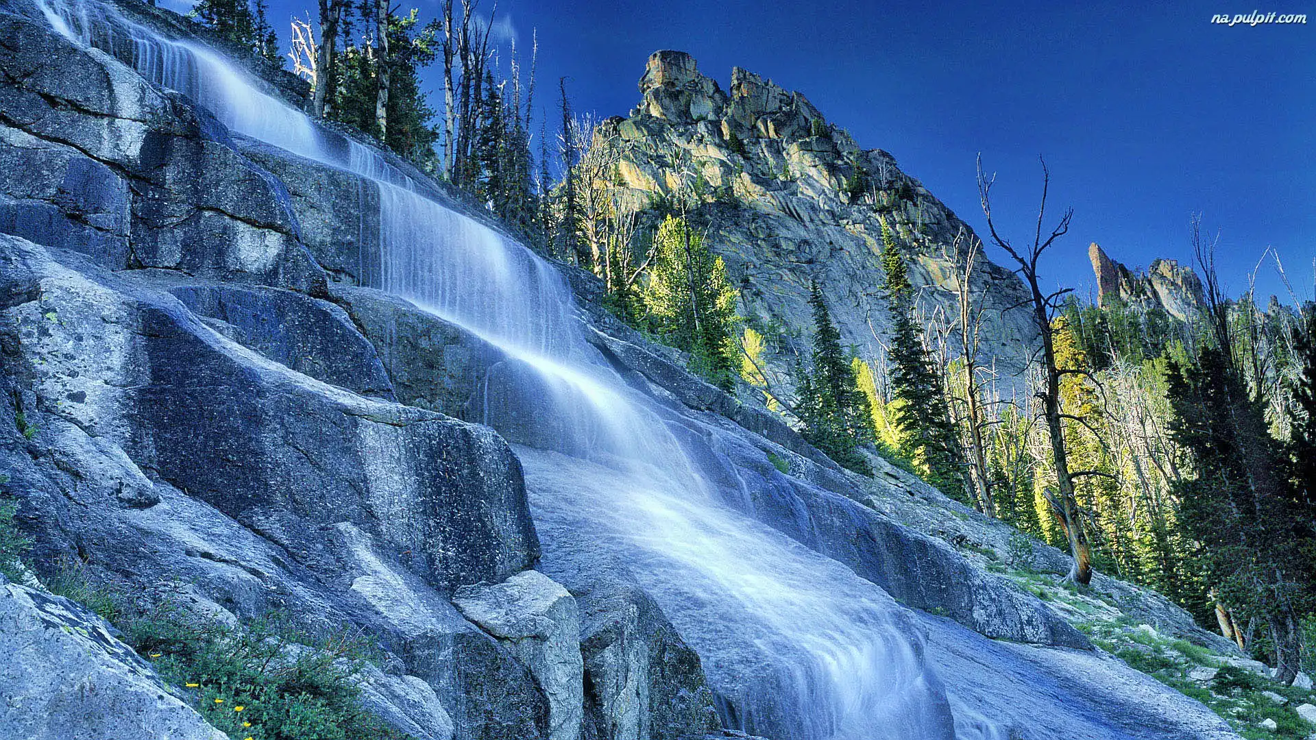 Niebo, Wodospad, Góry, Drzewa Na Pulpit
