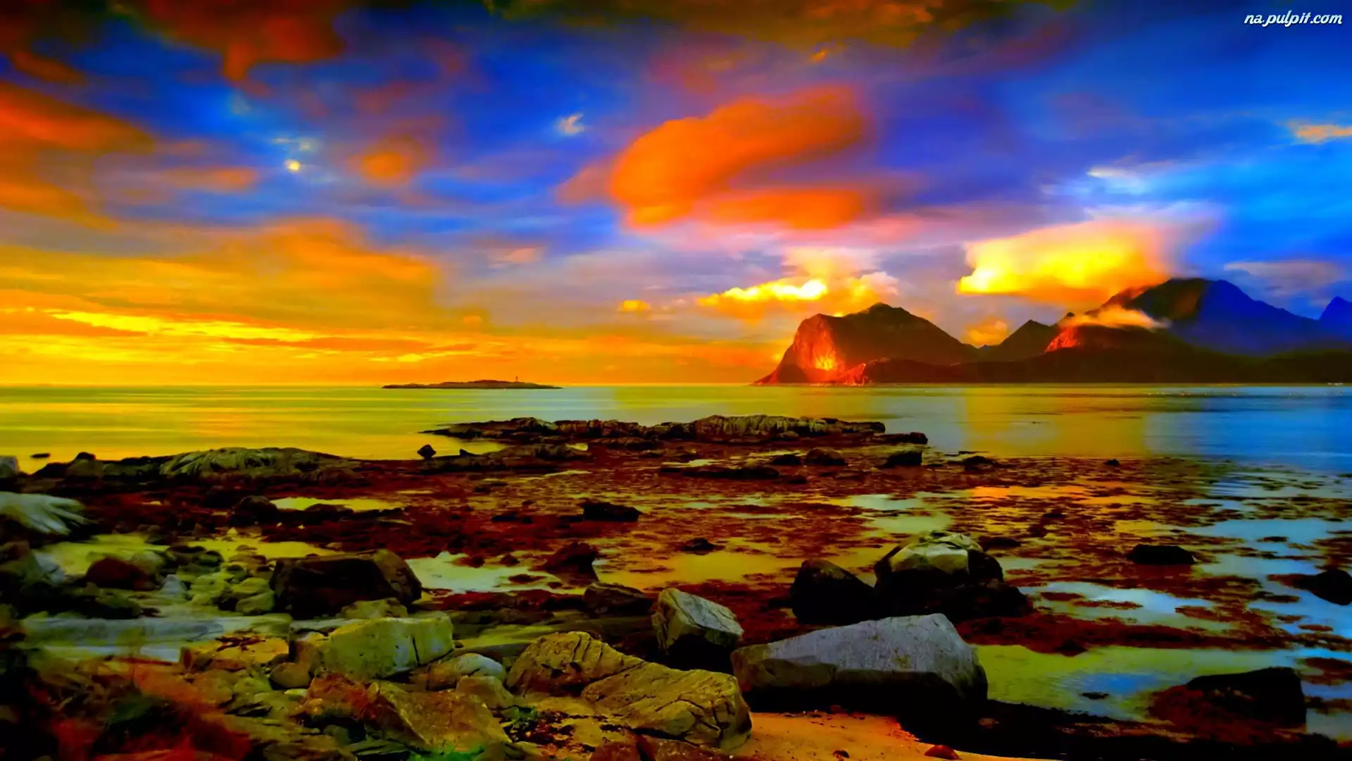 Niebo, Kamienie, Jezioro, Kolorowe Na Pulpit