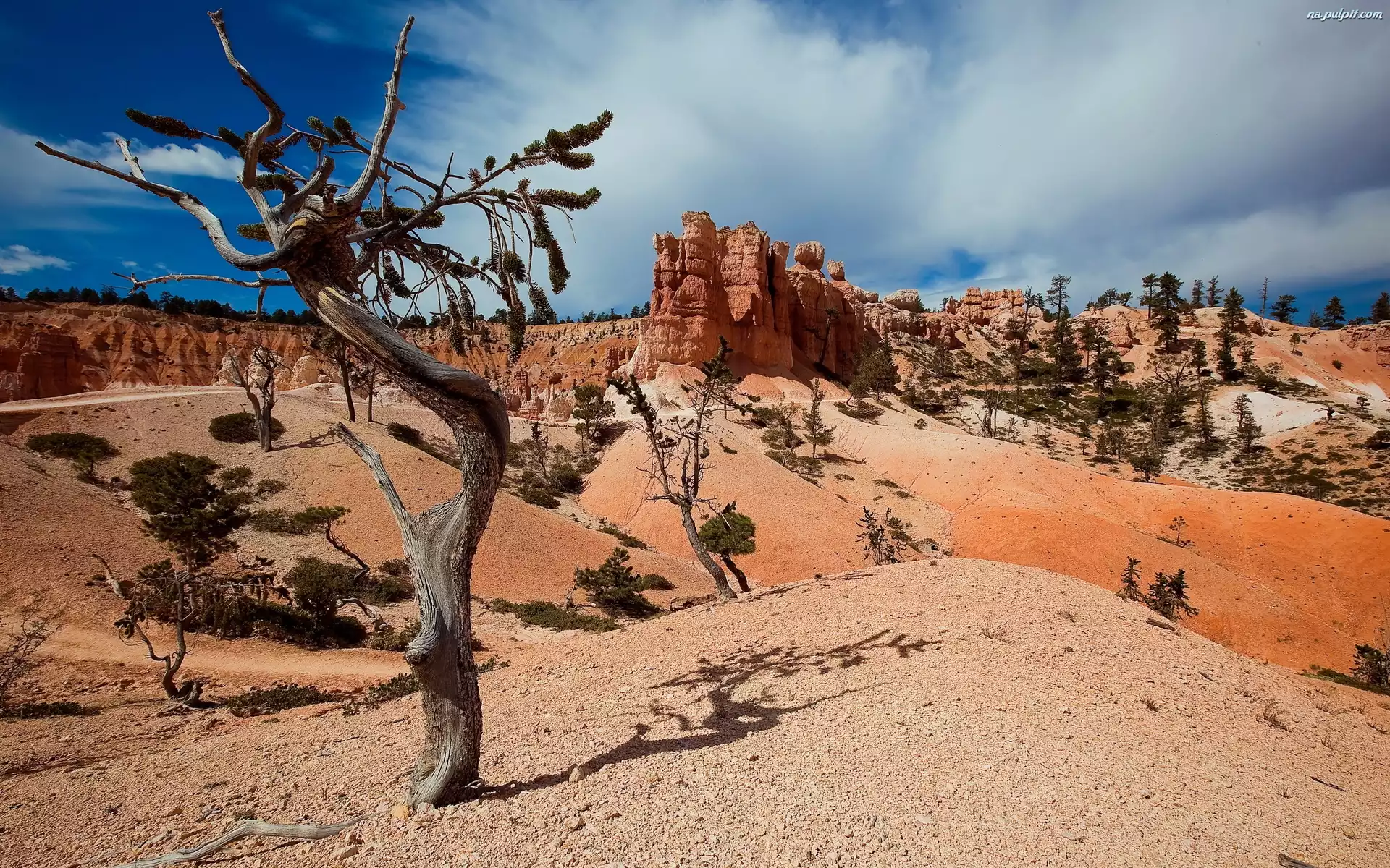 Niebo, Suche, Skałki, Kanion, Drzewo