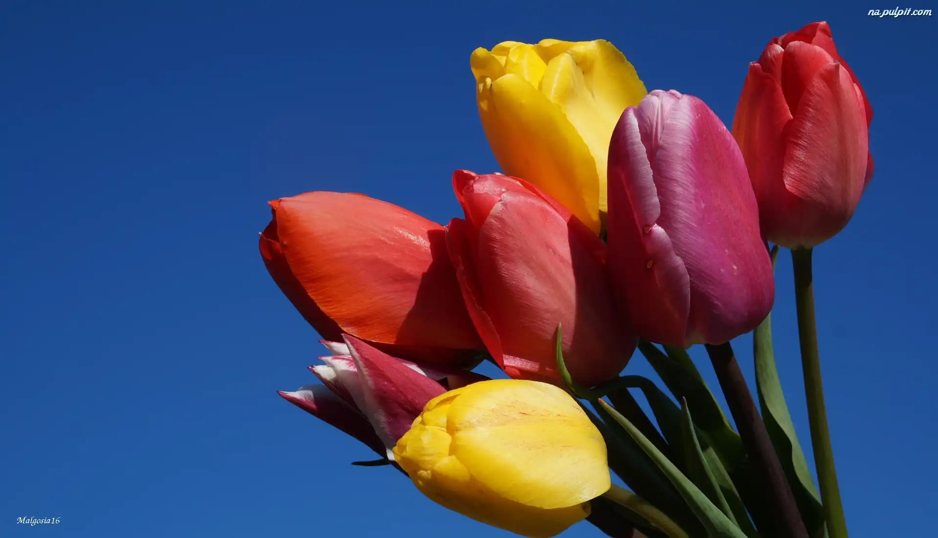 Niebo, Tulipany, Kolorowe, Bukiet Na Pulpit
